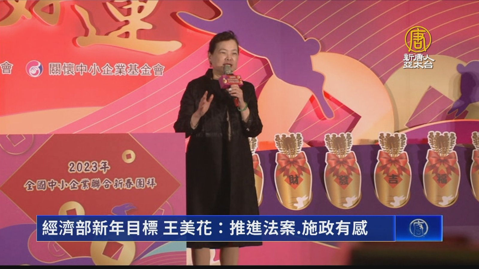 經濟部長王美花晚間出席全國中小企業聯合新春團拜,肯定中小企業對台灣經濟的貢獻,對於媒體詢問經濟部的新年目標,王美花表示,要強化國家的韌性,讓施政更有感。 //asset3.ntdtv.com.tw/public/uploads/assets/2023/02/01/2023-02-01-63da61b16786a.mp4 王美花|經濟韌性|調漲|中小企業|202302012023-02-01 22:39:10