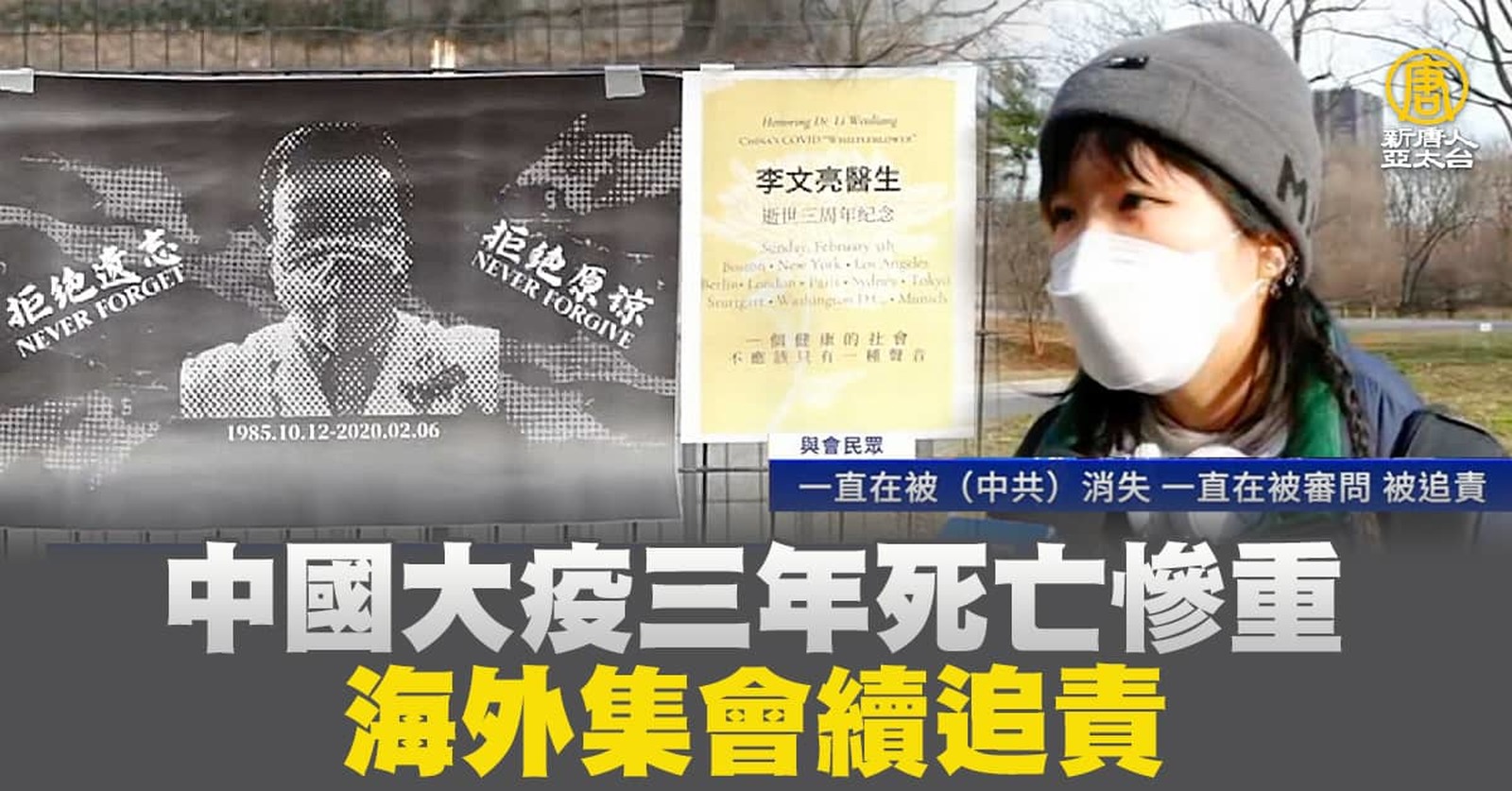 中國大疫三年死亡慘重 海外悼李文亮集會續追責