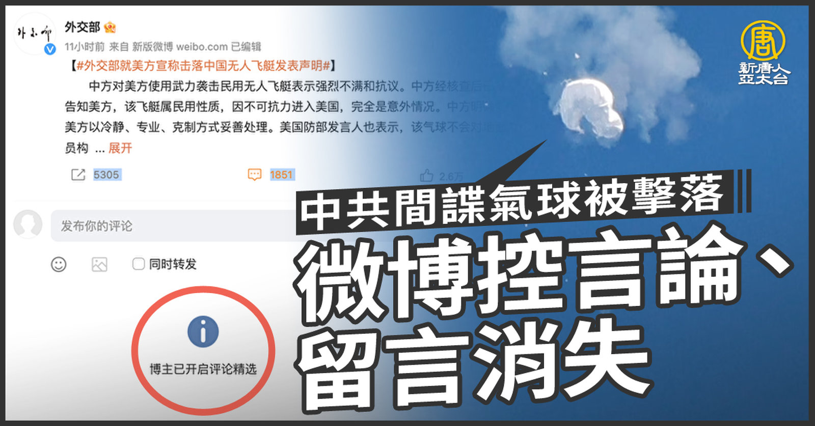 中共間諜氣球被擊落 微博控言論.留言消失|中國一分鐘