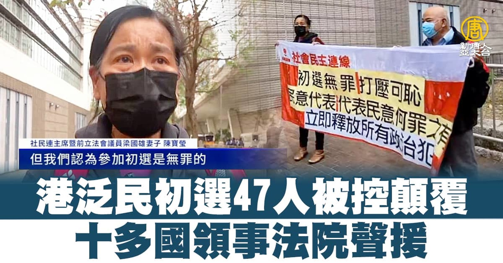 港泛民初選47人被控顛覆 十多國領事法院聲援