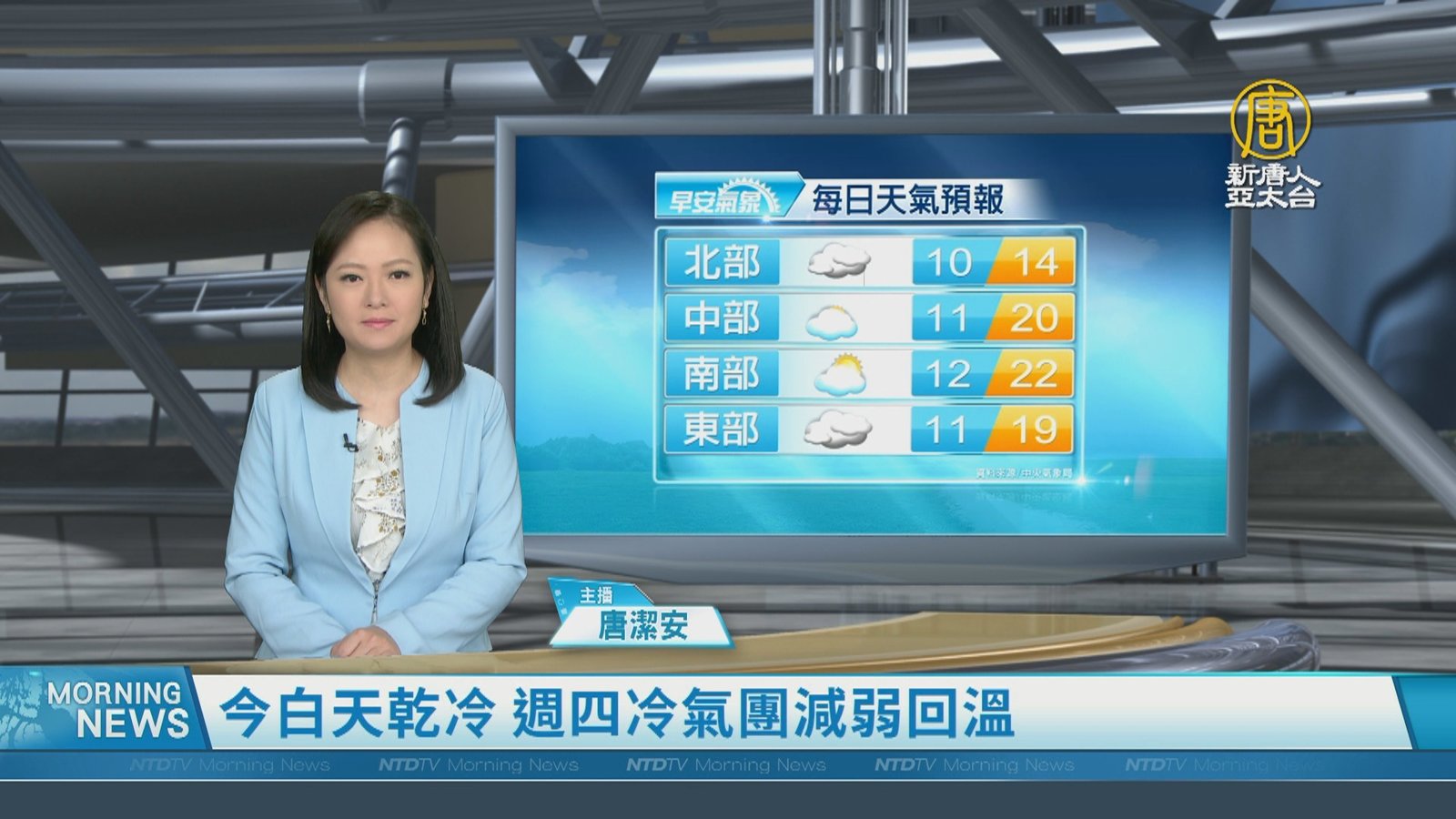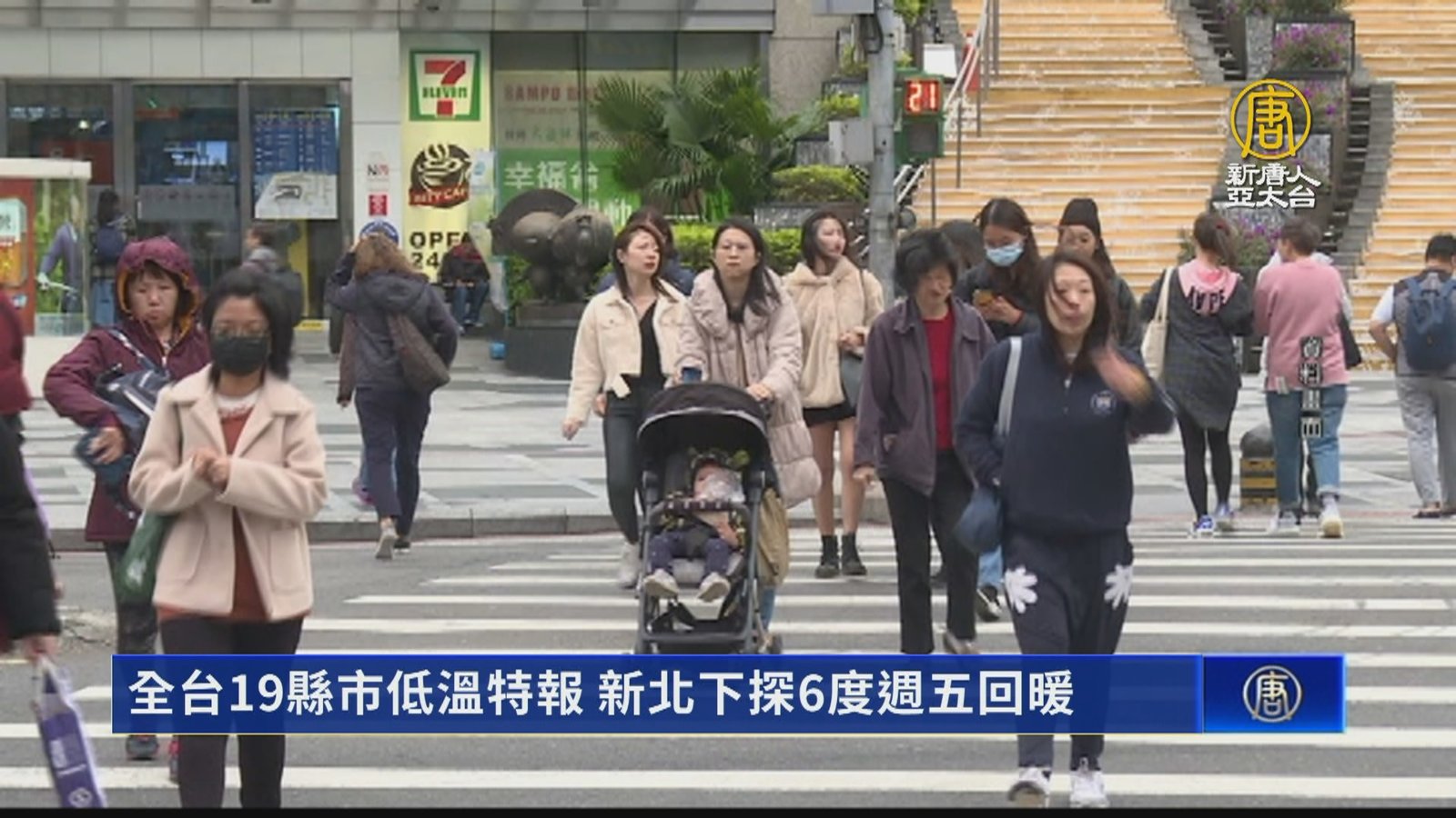 歡迎回來。提醒觀眾朋友要留意保暖。受到強烈大陸冷氣團及輻射冷卻影響,全台入夜急凍,氣象局也針對全台19縣市發布低溫特報,今晚(15日)到明天清晨,尤其新北市、桃園市有6度以下氣溫發生的機率,台北市、新竹縣市有持續10度左右或以下氣溫發生的機率。到了週五冷氣團減弱,天氣逐漸回暖,晴朗的好天氣可維持到週日,接著下週一又會受到東北季風影響,台灣北部、東半部轉雨,溫度也會略降。 //asset1.ntdtv.com.tw/public/uploads/assets/2023/02/15/2023-02-15-63ecd6050c06d.mp4 大陸冷氣團|天氣|低溫|天氣預報|202302152023-02-15 22:26:40