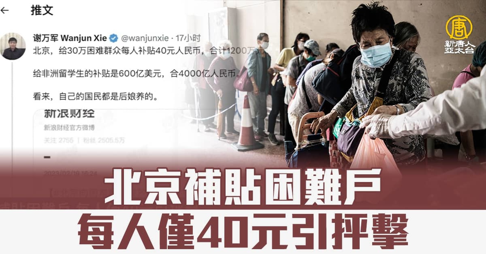 近日,北京市向困難戶發放補貼,每人僅有40元人民幣。另一方面,中共與伊朗簽署了4000億美元的合約,並承諾為伊朗留學生提供獎學金。引發輿論抨擊。 //asset2.ntdtv.com.tw/public/uploads/assets/2023/02/20/2023-02-20-63f379a666dcd.mp4 北京市|困難戶補貼40元|伊朗留學生|獎學金|202302202023-02-21 16:46:28
