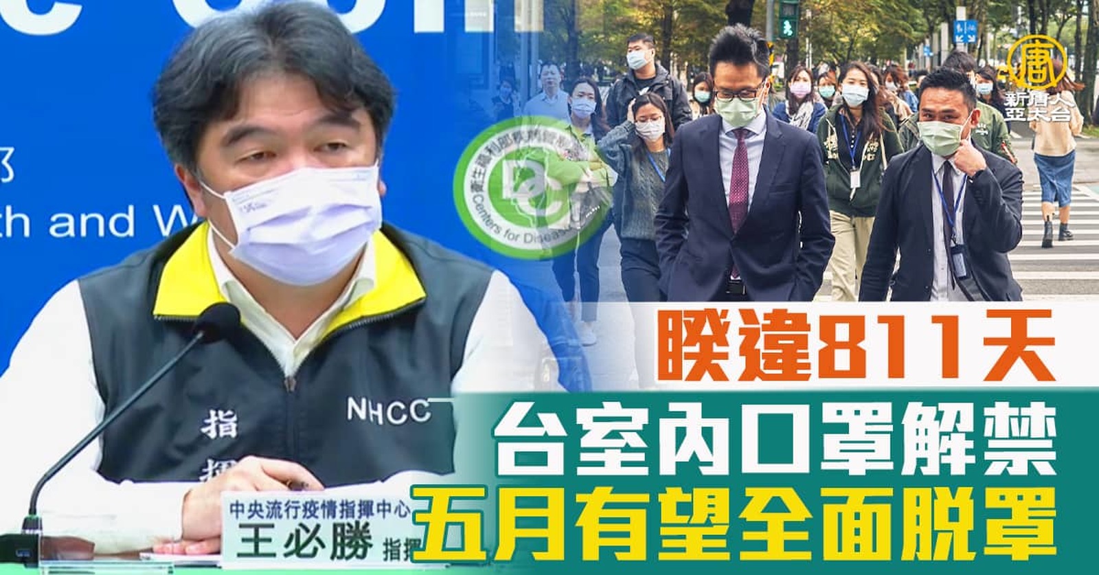 睽違811天 台室內口罩解禁 五月有望全面脫罩