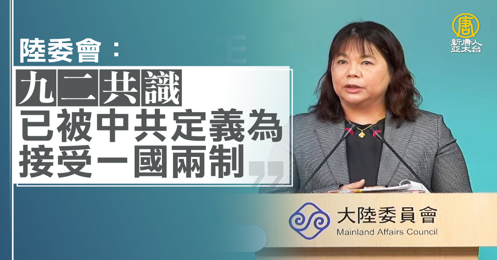 中共國台辦聲稱,回到九二共識政治基礎,兩岸即可恢復協商。陸委會今天表示,九二共識已經被中共定義為一國兩制,台灣人民無法接受,呼籲對岸正視兩岸互不隸屬的事實,在不設政治前提下來做溝通。 //asset3.ntdtv.com.tw/public/uploads/assets/2023/02/23/2023-02-23-63f75cae58167.mp4 九二共識|陸委會|李麗珍|中共|政治前提|202302232023-02-23 22:12:40