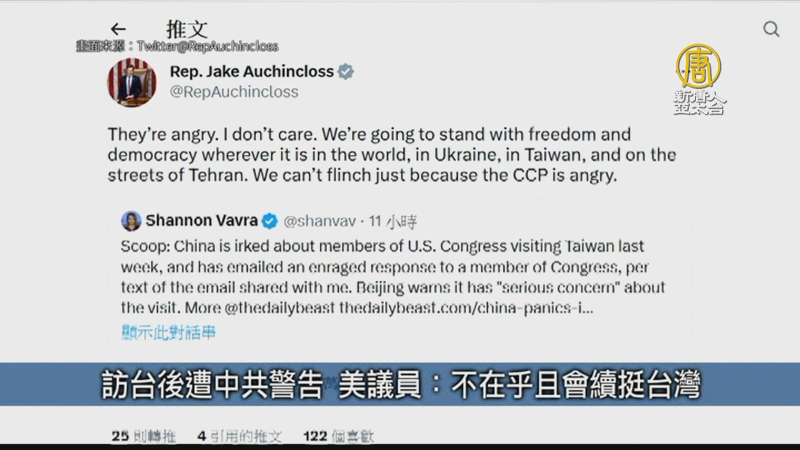 訪台接中共警告 美議員回擊:I don't care|台灣速速看