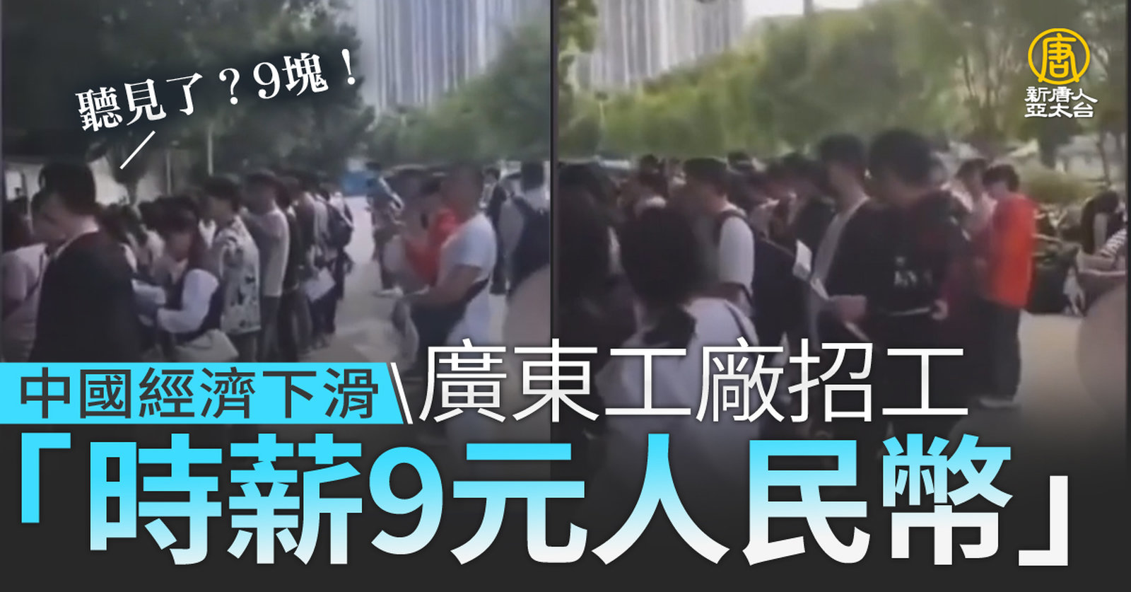 中國經濟下滑 廣東工廠招工時薪9元人民幣