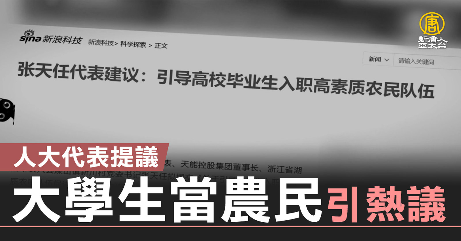 中共兩會即將登場,與會官員的各類提案再成看點,有人大代表提出建議稱,引導高校畢業生成為「高素質」農民,引發熱議。 //asset3.ntdtv.com.tw/public/uploads/assets/2023/03/02/2023-03-02-6400a091f408b.mp4 中共兩會|高校畢業生|高素質農民|中國經濟2023-03-02 21:04:56