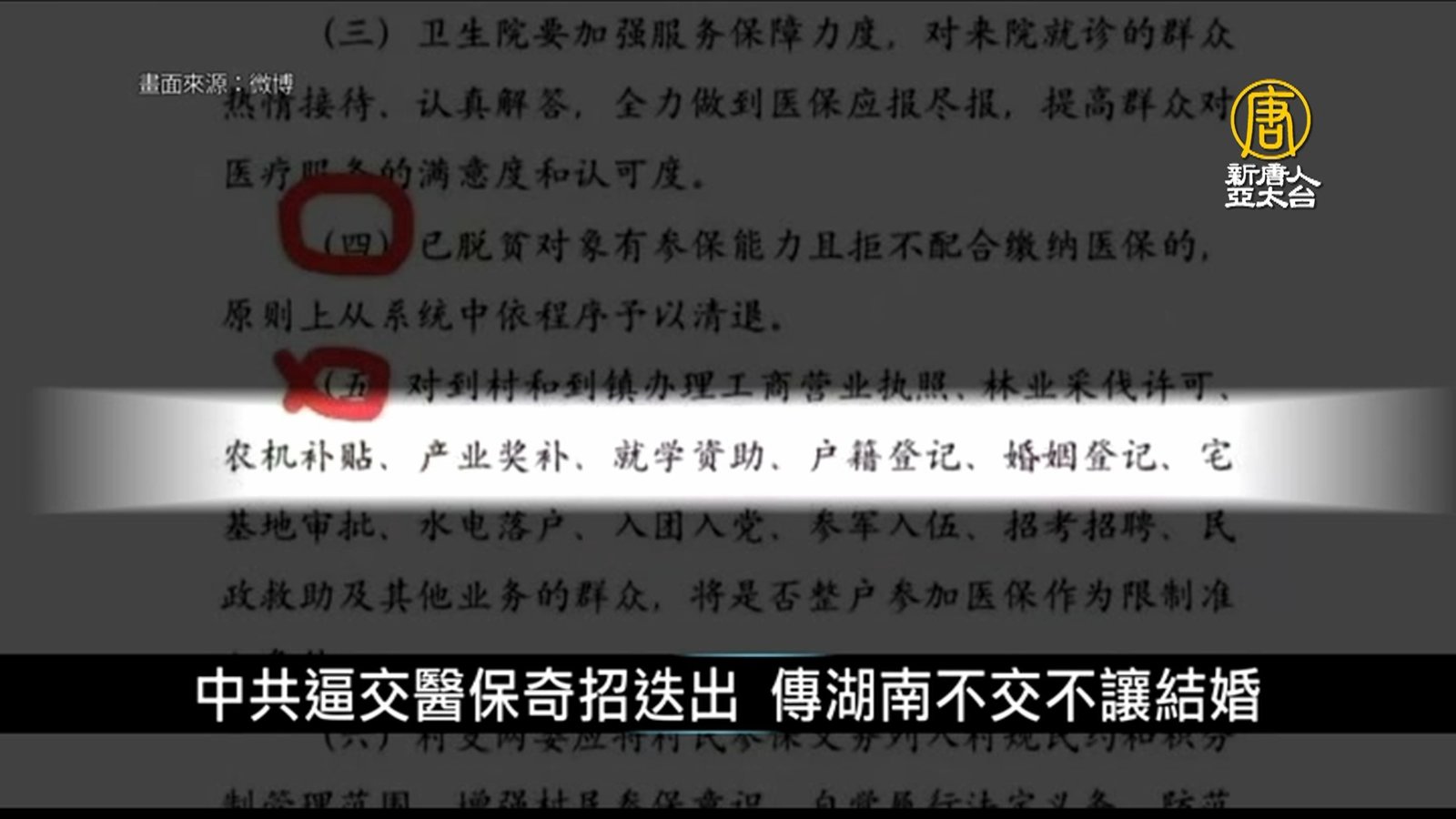 中共逼交醫保奇招迭出 傳湖南新化不交不讓結婚|中國一分鐘