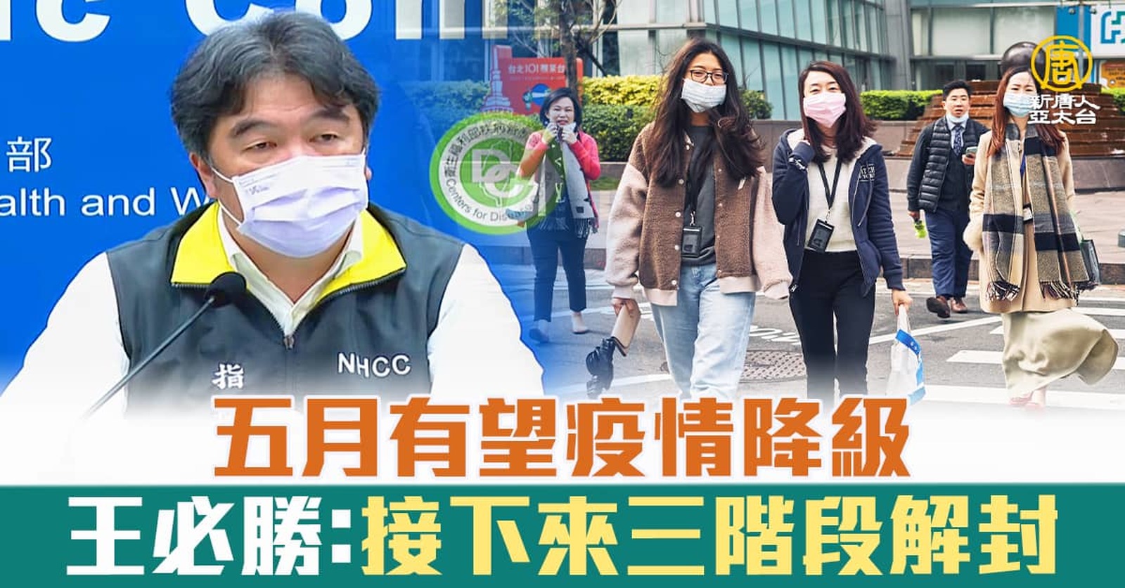 接著來看到,近期各國紛紛將COVID-19疫情降級,解除相關防疫禁令。台灣也逐漸跟上開放腳步,防疫指揮官王必勝表示,接下來將分成三個階段實施開放,並且有望在五月調降疫情等級,到時候,指揮中心也會隨之降級開設或解散。 //asset2.ntdtv.com.tw/public/uploads/assets/2023/03/02/2023-03-02-64009481c5c16.mp4 中共病毒|武漢肺炎|防疫|降級|開放|正常生活2023-03-03 11:26:19