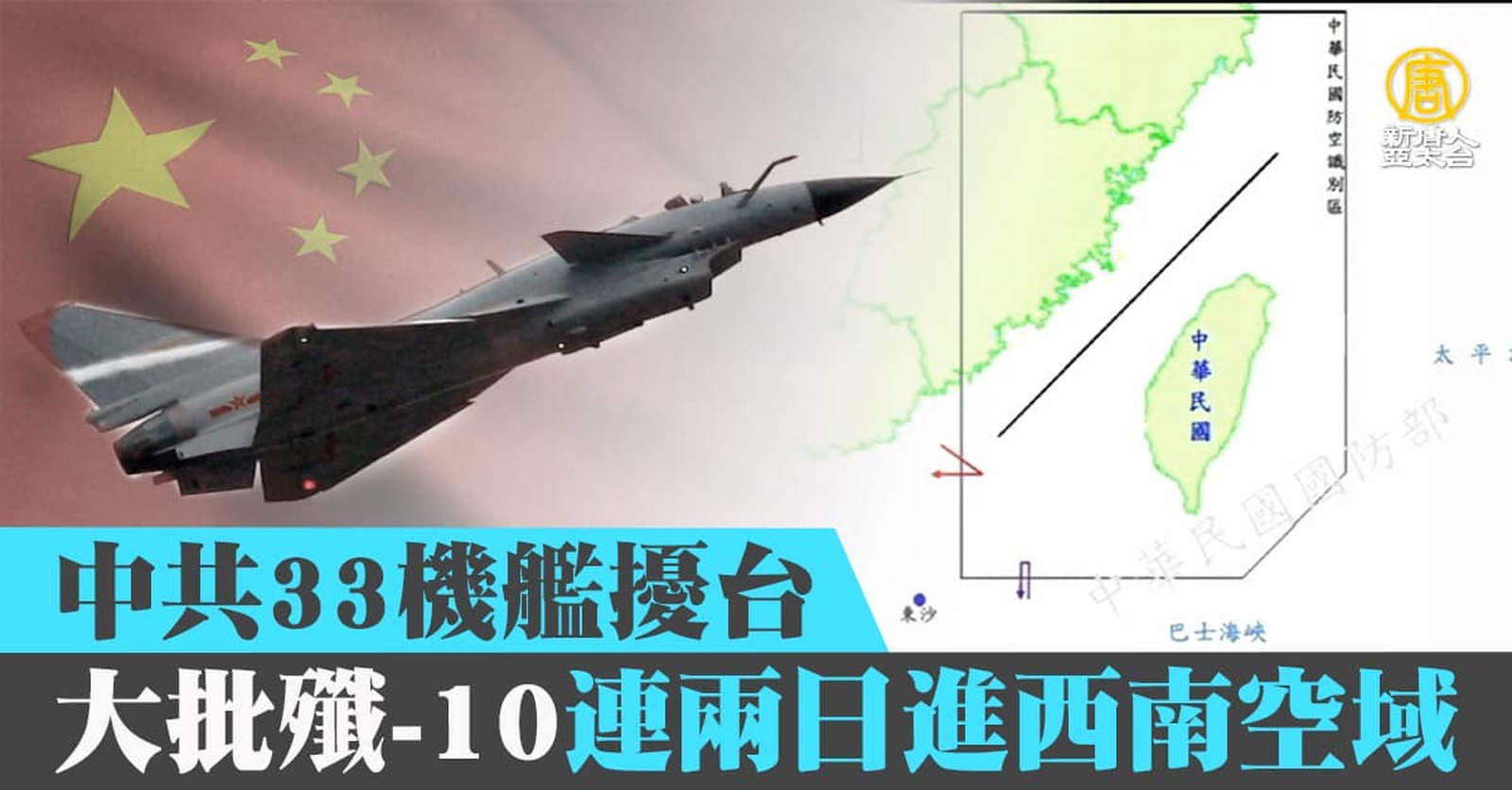 中共33機艦擾台 大批殲-10連兩日進西南空域