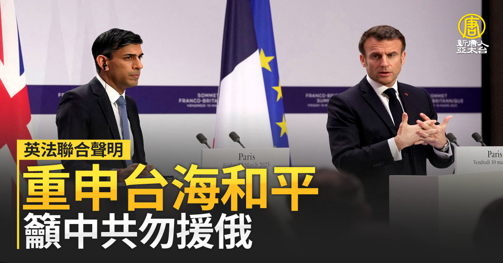 英法聯合聲明重申台海和平 籲中共勿援俄