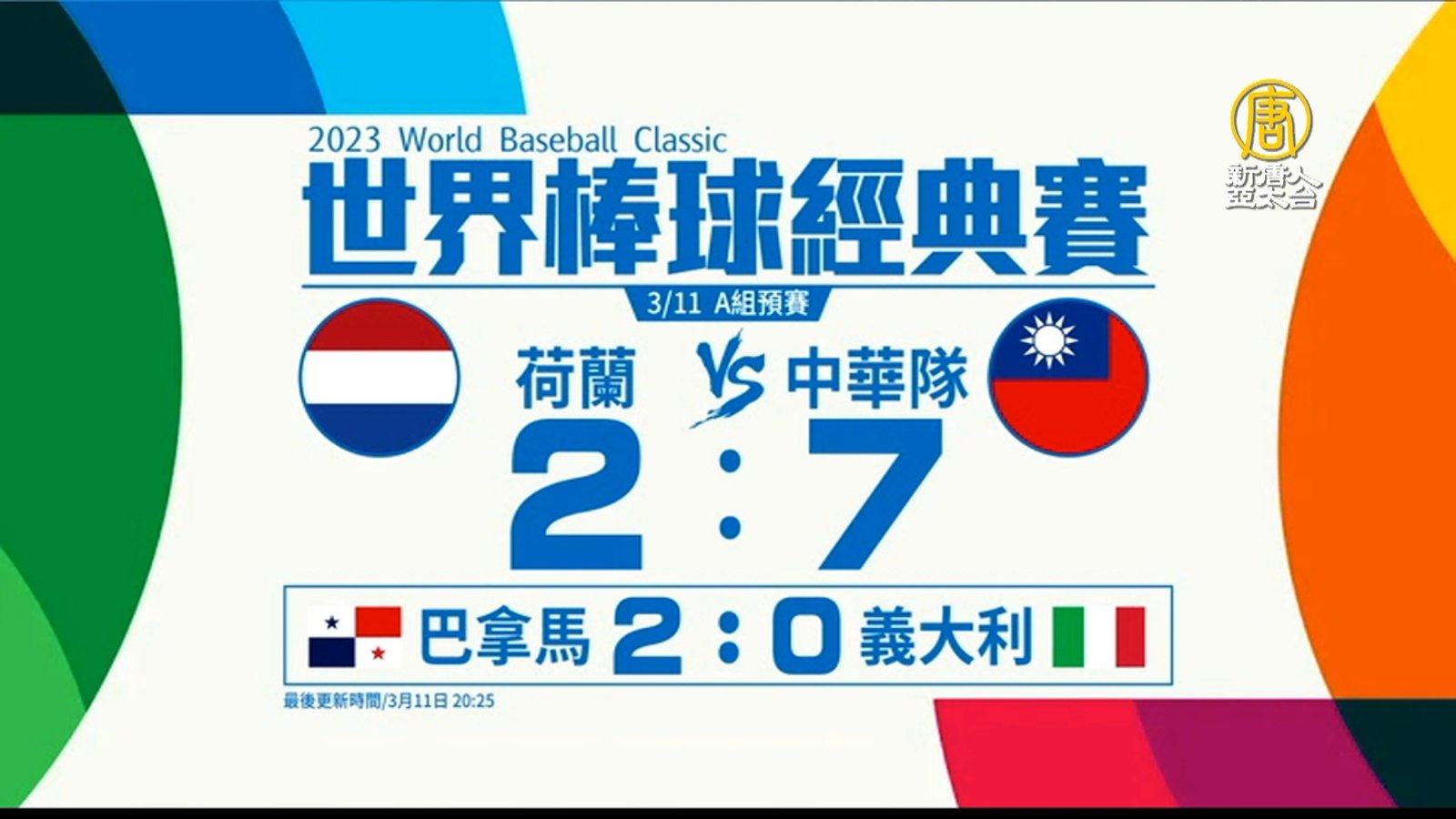 來關心世界棒球經典賽A組最新戰況,中華隊對上荷蘭,目前比賽進行到3局下半,中華隊暫時以6:2領先荷蘭,這一戰攸關台灣能否晉級。 //asset3.ntdtv.com.tw/public/uploads/assets/2023/03/11/2023-03-11-640c776178a2a.mp4 世界棒球經典賽|中華隊|荷蘭2023-03-11 20:40:34