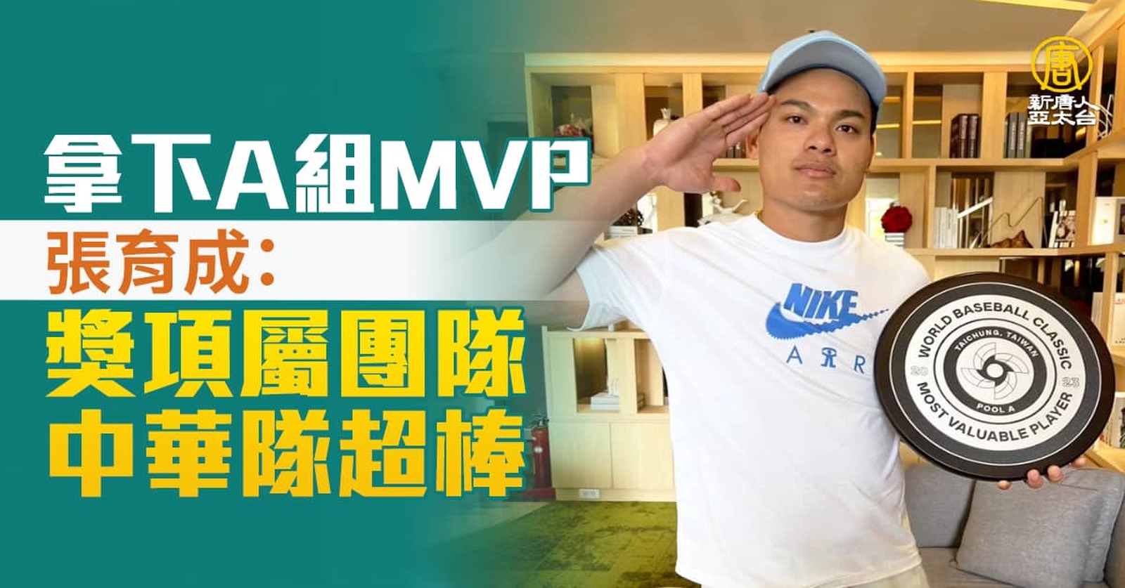 在台灣舉辦的2023年世界棒球經典賽A組預賽,週日(12日)落幕。台灣雖然無緣晉級八強,但旅美球員張育成的表現,贏得球迷讚賞,甚至獲得A組MVP,張育成也謙虛說,獎項屬於團隊,並在臉書向支持者感謝:「謝謝大家的敬禮,永生難忘。」 //asset2.ntdtv.com.tw/public/uploads/assets/2023/03/13/2023-03-13-640f2344cfd02.mp4 WBC|世界棒球經典賽|張育成|MVP|A組預賽2023-03-14 11:35:37