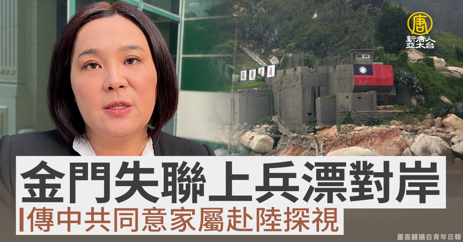 新聞一開始,先帶您關心。台灣前線離島,金門失聯的陳姓上兵,確定人在中國大陸。金門立法委員陳玉珍宣稱,對岸同意讓家屬前往探視,陳玉珍表示,最快下周一陪同陳父前往。不過,有其他立委擔憂,中共會藉此分化台灣的軍民士氣。 //asset1.ntdtv.com.tw/public/uploads/assets/2023/03/15/2023-03-15-6411c2c4d0505.mp4 金門|廈門|上兵失聯|陳玉珍2023-03-15 21:24:30