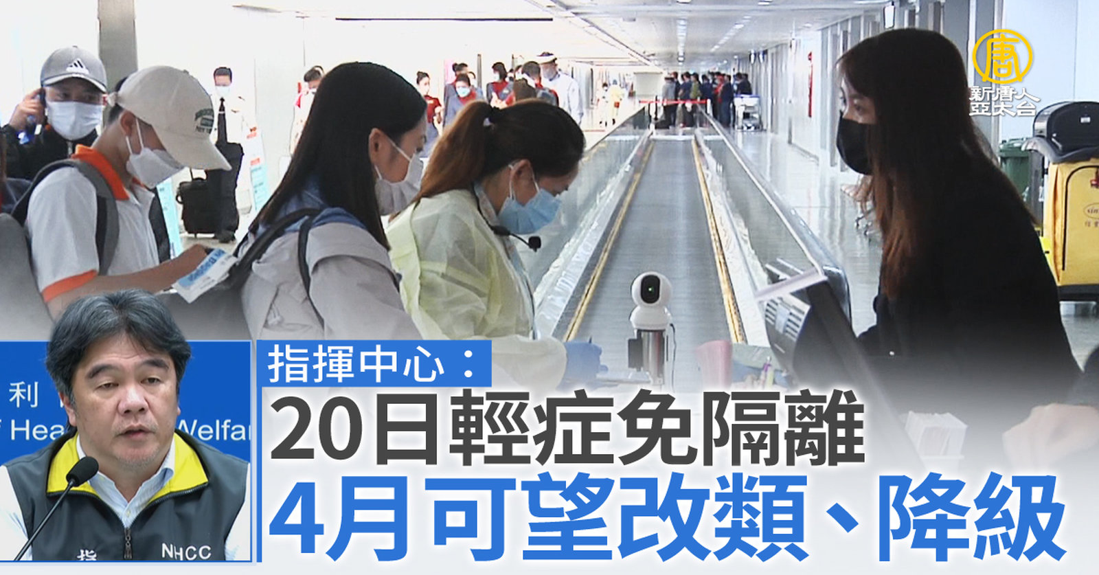 指揮中心:20日輕症免隔離 4月可望改類、降級