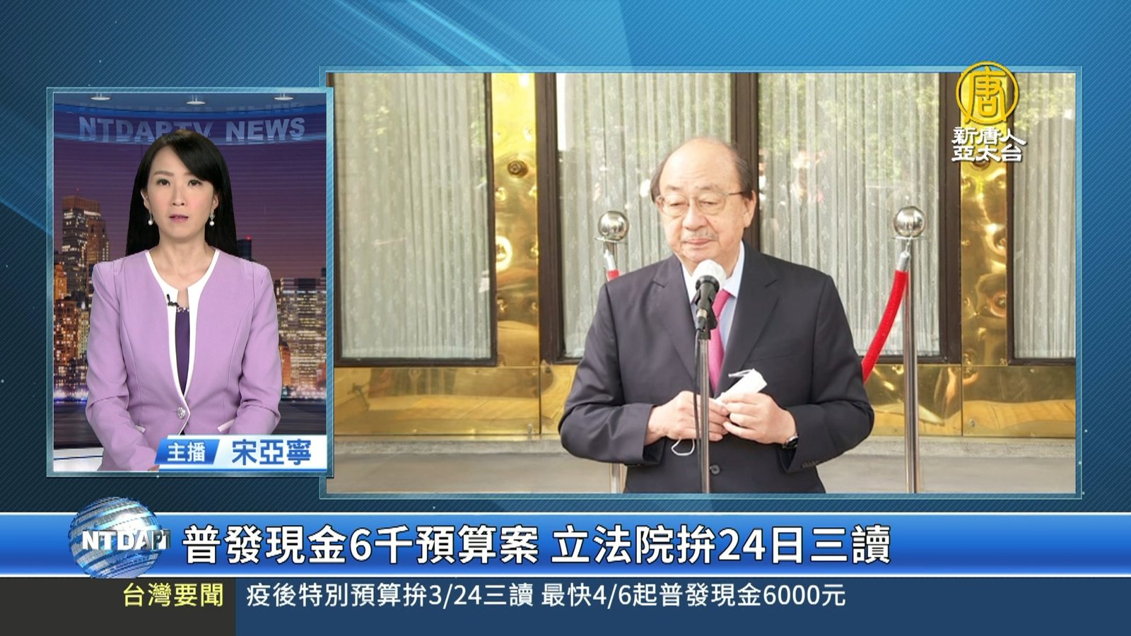 新聞一開始,帶您關心,全民普發6000元現金,有望在清明連假後領到!立法院今天(16日)進行朝野協商,針對攸關全民普發現金的疫後特別預算案,各黨團有共識,將在3月24日完成三讀,因此全民普發現金的時程,可望加快。民進黨立院黨團總召柯建銘表示,預估清明連假後,最快4月6日,就能陸續發現金6000元。 //asset1.ntdtv.com.tw/public/uploads/assets/2023/03/16/2023-03-16-641305cc13198.mp4 普發現金|立法院|預算案2023-03-16 20:01:30