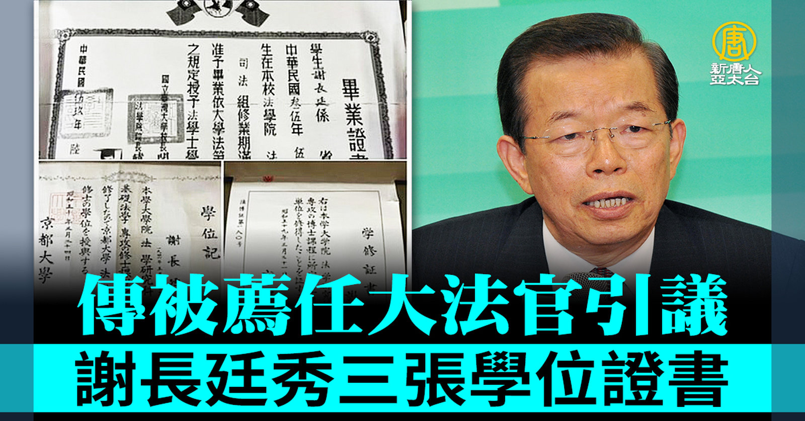 傳被薦任大法官引議 謝長廷秀三張學位證書