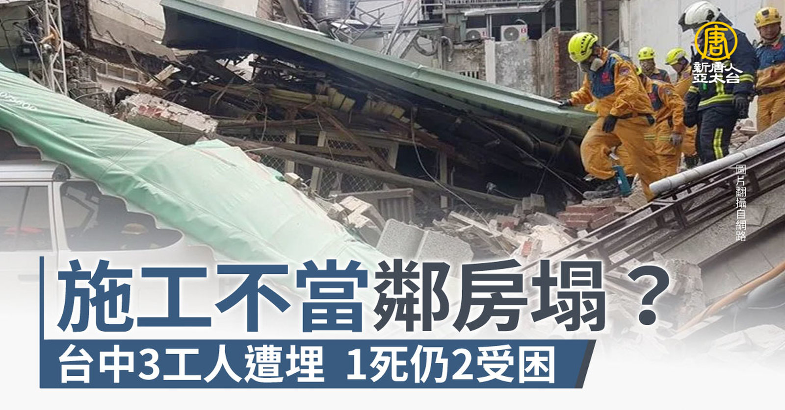 施工不當鄰房塌?台中3工人遭埋 1死仍2受困