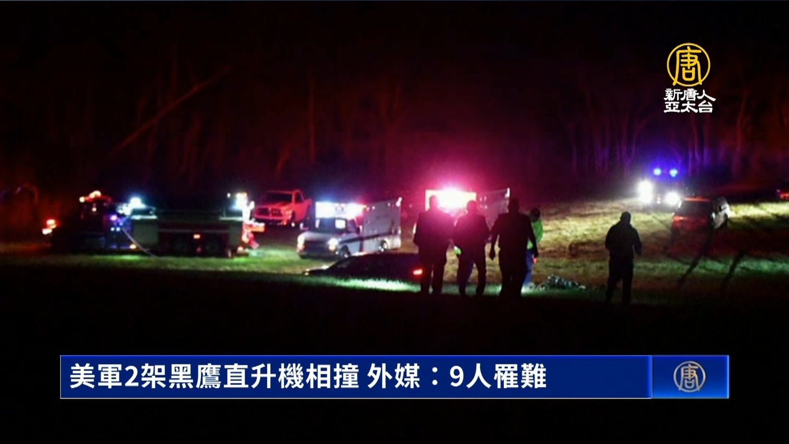 歡迎回來。來看到,美軍傳出意外事故,美國陸軍兩架執行訓練任務的(HH-60)黑鷹直升機,在當地時間29日晚間,在肯塔基州坎貝爾堡軍事基地附近的上空相撞。機上人員的狀況目前還不明朗,據外媒報導,可能有多達9人罹難。肯塔基州長貝希爾證實事件,並說目前州警察局和州緊急事故管理局,正在處理這起事故。 //asset1.ntdtv.com.tw/public/uploads/assets/2023/03/30/2023-03-30-642583cb80639.mp4 黑鷹直升機|美國肯塔基州|坎貝爾堡軍事基地2023-03-30 20:41:21