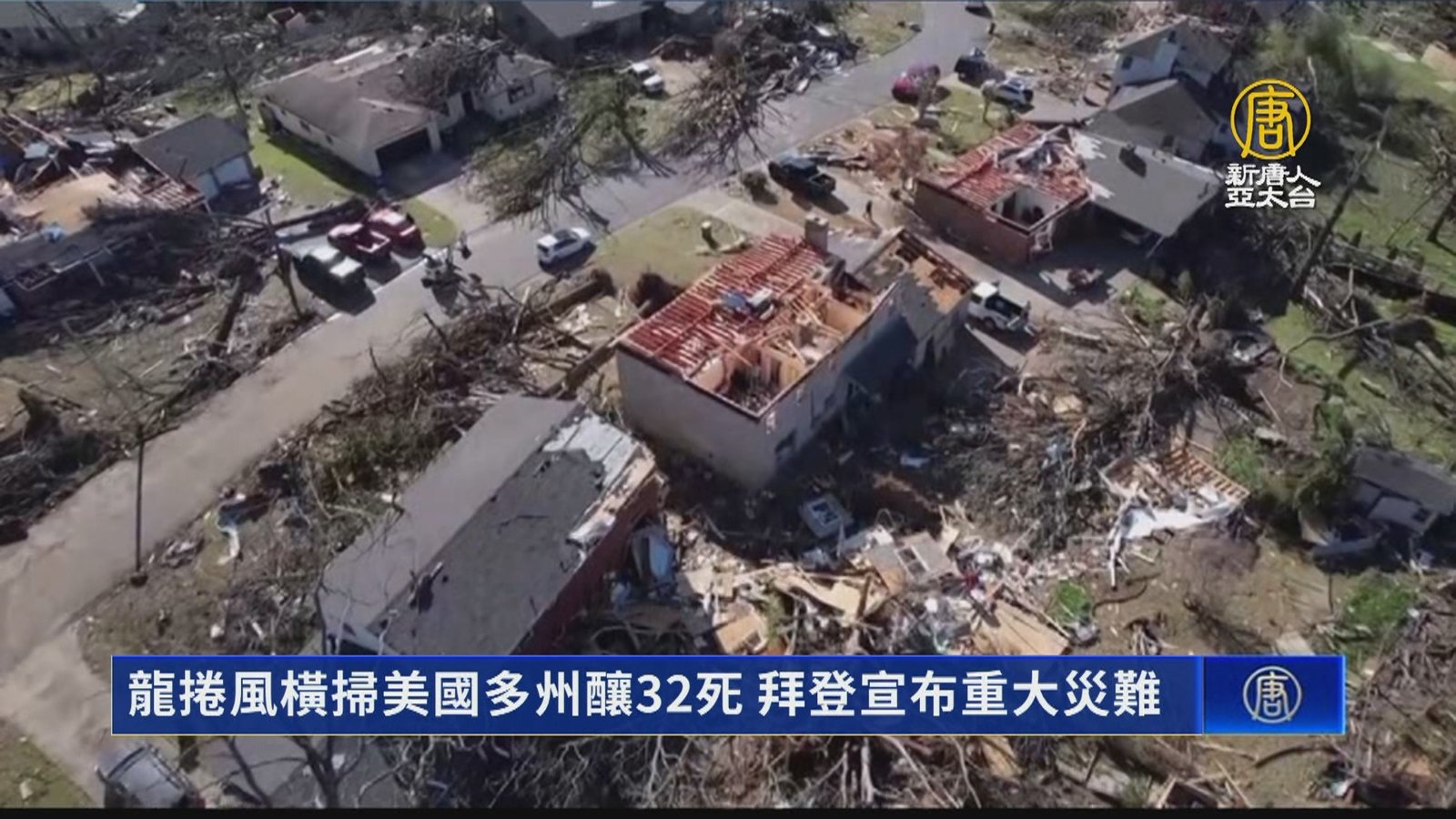 龍捲風橫掃美國中西部,週六(3月31日)開始,美國南部與中西部地區多個州,發生超過50起龍捲風,死亡人數上修到32人,受影響的11的州,許多地區滿目瘡痍。美國總統拜登宣布,災情已屬「重大災難」,批准向兩個州提供聯邦政府援助與資金。 //asset2.ntdtv.com.tw/public/uploads/assets/2023/04/03/2023-04-03-642acbf1eb211.mp4 龍捲風|風暴|密西西比州|阿拉巴馬州|印第安納州|伊利諾州2023-04-03 20:50:02