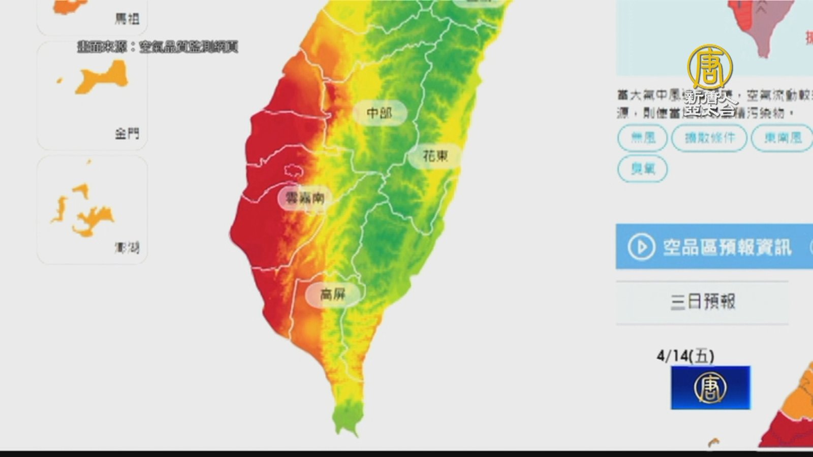 中國大陸近期嚴重沙塵暴,空氣汙染物順著台灣海峽的西北風移入,台灣環保署下午表示,今天偏東風,西半部地區水平及垂直擴散條件差,混合層高度偏低,導致汙染物累積,空氣品質不佳,台灣中南部地區為紅色警示等級,其他地區多為橘色提醒等級;明天週六(15日)鋒面通過,中部以北降雨機率大,空氣品質可望好轉,但晚間東北季風增強,挾帶中國沿海的汙染物影響台灣,預估空品多為橘色提醒等級;週日環境風場轉弱,中南部地區短時間達紅色警示,將持續至下週二。 //asset3.ntdtv.com.tw/public/uploads/assets/2023/04/14/2023-04-14-6439455f78ebb.mp4 空污|空氣品質|紅色警示2023-04-14 20:43:21