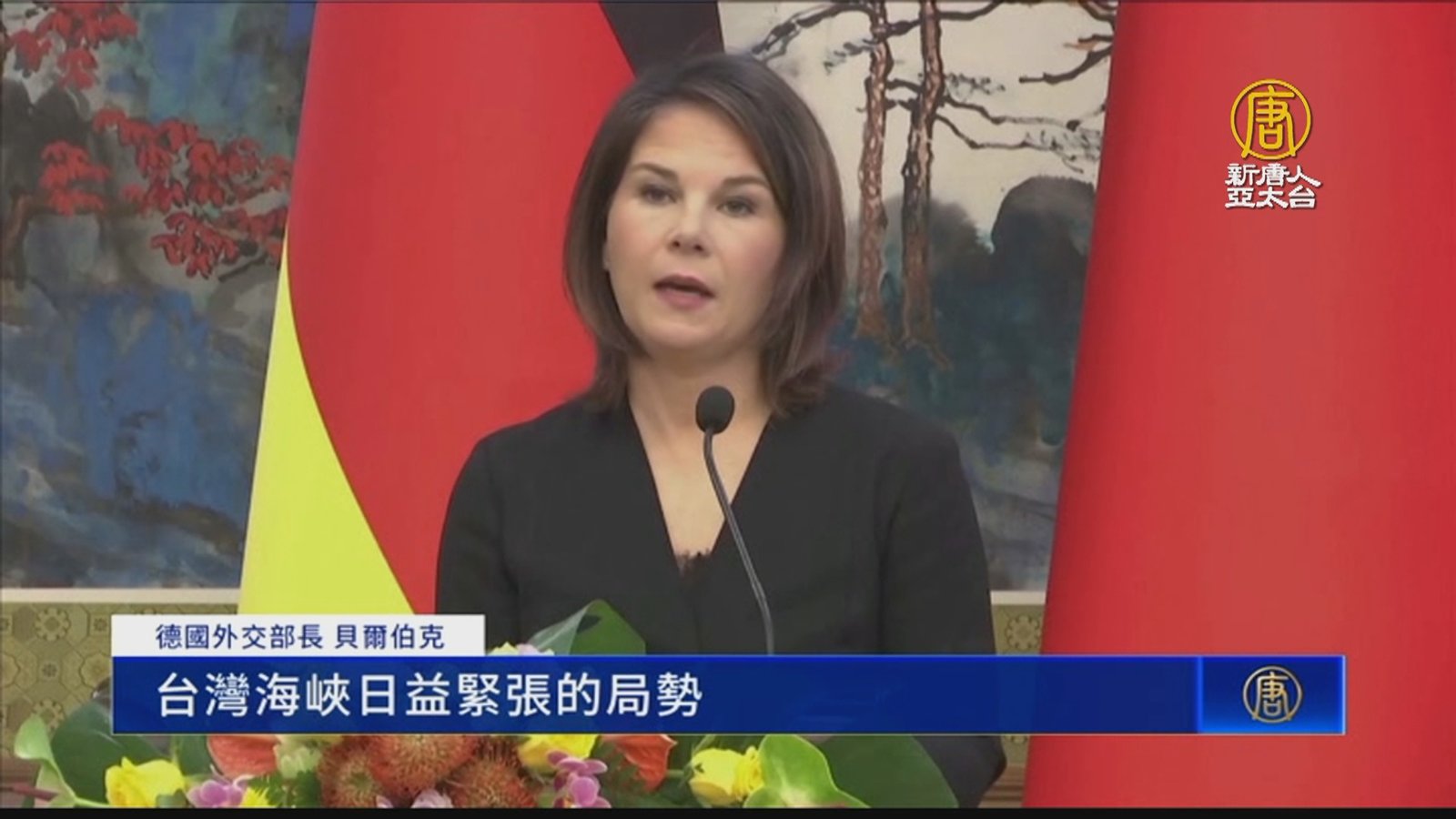 歐盟外長日前強調「維持台海和平」。德國外交部長貝爾伯克訪問中國大陸,14日與中共外交部長秦剛會談。在兩人同台的記者會上,貝爾伯克正面警告中共,德國非常關注台灣海峽的緊張局勢,他強調,單方面、暴力改變現狀,對歐洲來說是不可接受的。 //asset1.ntdtv.com.tw/public/uploads/assets/2023/04/14/2023-04-14-643947d84bb32.mp4 台海|中共軍演|貝爾伯克|德國外長2023-04-14 22:06:35