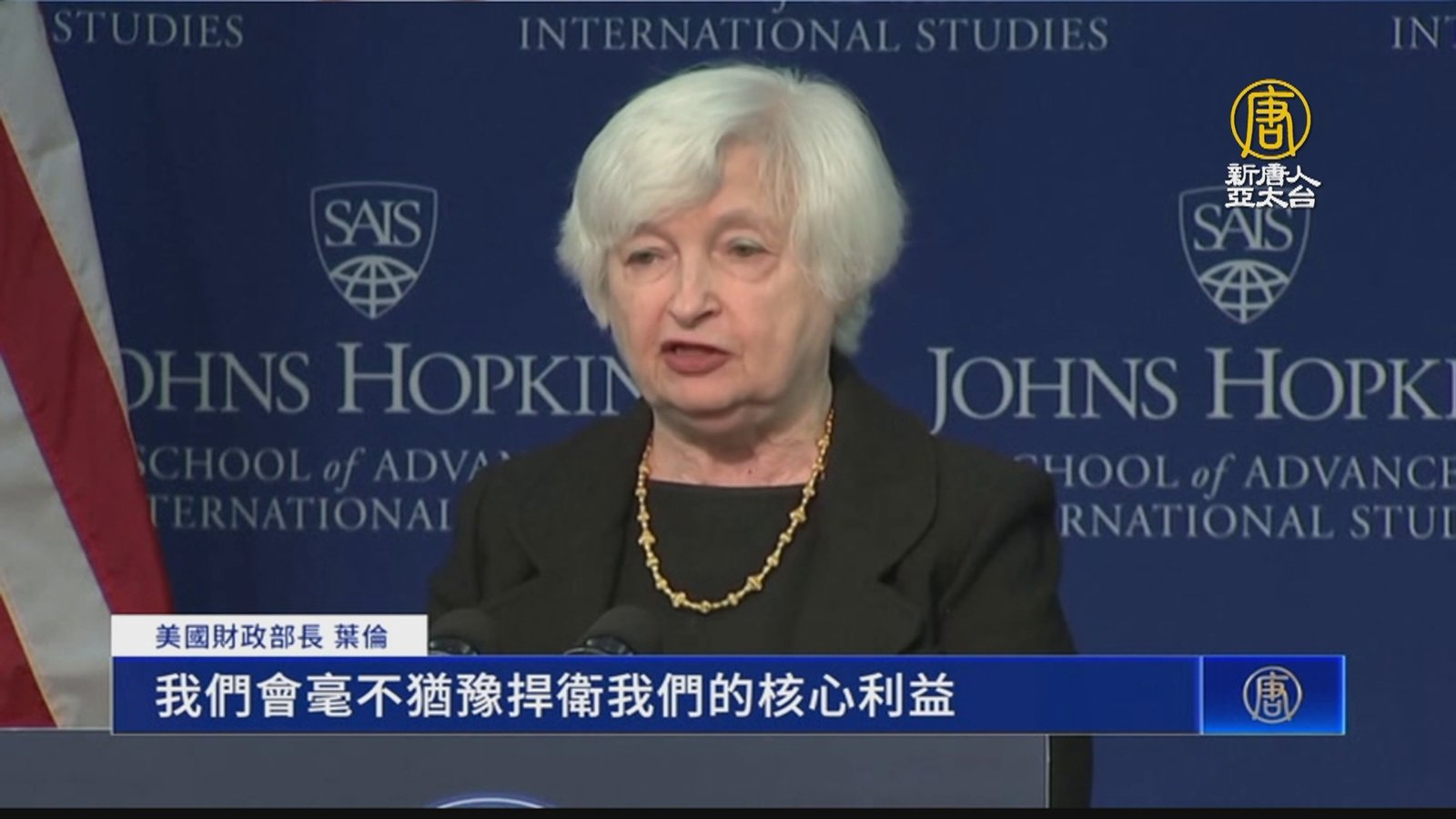 美國財長葉倫,20日就美中經濟關係發表了至今為止最全面也最清晰的講話。葉倫表示,不會因為經濟利益而放棄美國的國家安全與人權價值觀。並預告,會針對攸關國安的技術祭出新的禁令。 //asset1.ntdtv.com.tw/public/uploads/assets/2023/04/21/2023-04-21-64427f3d3aa60.mp4 葉倫|美中關係2023-04-21 20:14:51