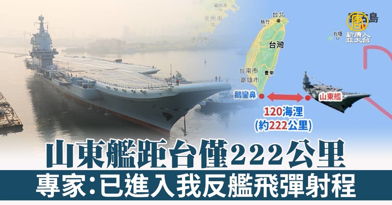 山東艦距台僅222公里 專家:已進入我反艦飛彈射程