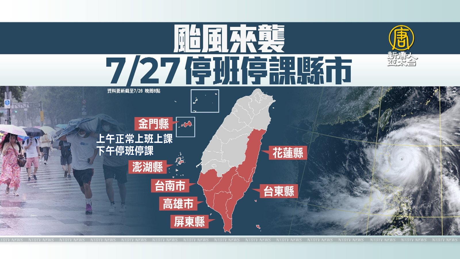 颱風杜蘇芮來襲台灣,明天各縣市是否會放颱風假?截至26日晚間8點,目前確定,台南市、高雄市、屏東縣、花蓮縣、台東縣、澎湖縣27日停止上班、停止上課;金門縣27日上午正常上班上課,下午停班停課。 //asset1.ntdtv.com.tw/public/uploads/assets/2023/07/26/2023-07-26-64c110b4ca07b.mp4 杜蘇芮颱風|颱風|停課|停班2023-07-26 20:05:22