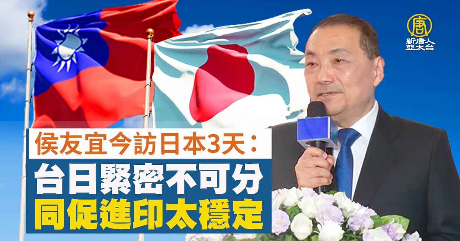 2024選戰話題,國民黨總統參選人侯友宜雖然感冒,但今天(31)按照計畫,展開3天2夜的訪日行,他強調要與日本一起促進印太和平;對於媒體問到,「挺郭派」議長謝典林退出國民黨一事,侯友宜回應,尊重、遺憾。 //asset2.ntdtv.com.tw/public/uploads/assets/2023/07/31/2023-07-31-64c7a506b49b1.mp4 2024總統大選|侯友宜|謝典林|郭台銘|謝衣鳳2023-07-31 20:11:51