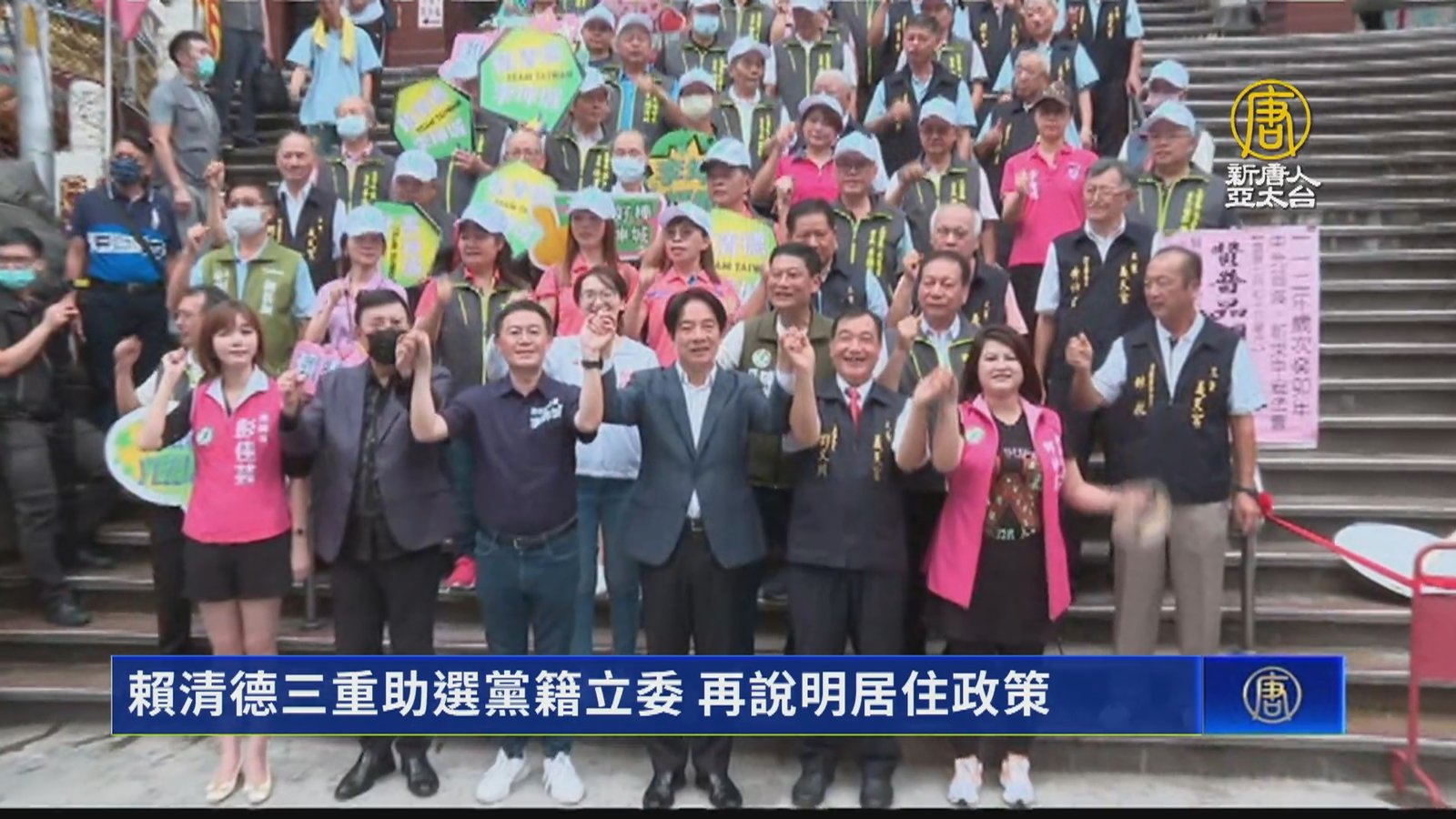 民進黨總統參選人賴清德今天(5日)前往三重宮廟參拜,同時為黨籍立委參選人助選。賴清德也再說明居住政策,包括既有、以及興建社宅25萬戶,還有包租代管、組屋補貼總計加碼百萬戶。 //asset2.ntdtv.com.tw/public/uploads/assets/2023/08/05/2023-08-05-64ce2ff1c3077.mp4 2024總統大選|社宅|賴清德2023-08-05 19:12:36