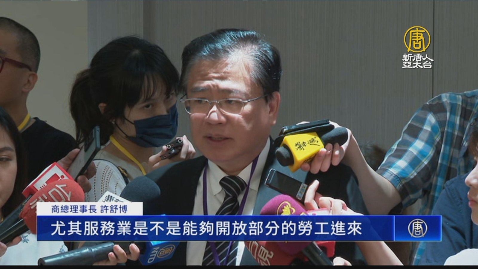 全國商業總會今天(10日)召開會員大會,雖然疫後國內經濟持續好轉,但理事長許舒博表示,產業界目前最大的問題就是缺工,希望政府能針對國人不願意從事的職務類別,優先開放外籍移工,補足人力缺口。 //asset3.ntdtv.com.tw/public/uploads/assets/2023/08/10/2023-08-10-64d4c99162767.mp4 許舒博|缺工|服務業|工商界|全國商業總會2023-08-10 19:25:09