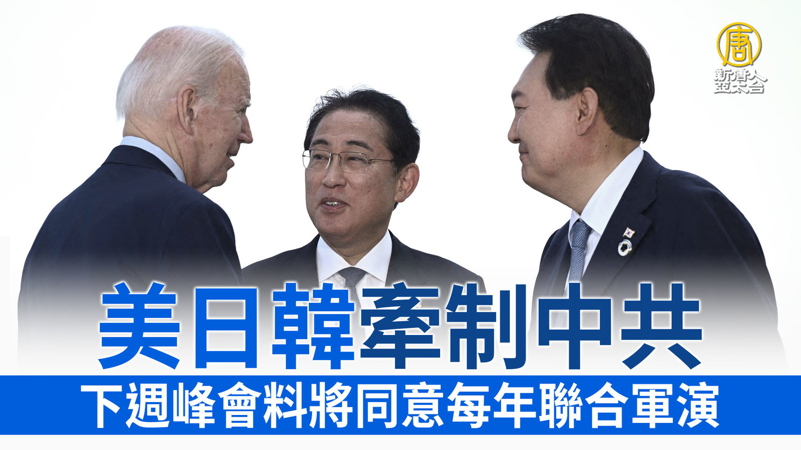 再來看到,副總統賴清德17日過境美國舊金山之際,日本首相岸田文雄17日也將訪問美國,美日韓領袖預計在將18日舉行會談,峰會的聯合聲明將明載,未來3國峰會每年舉行。令外,日本自衛隊也將與美韓軍隊每年實施聯合演訓,目的在於牽制中共與北韓。 //asset3.ntdtv.com.tw/public/uploads/assets/2023/08/12/2023-08-12-64d768a71386e.mp4 美日韓峰會|岸田|尹錫悅|拜登2023-08-12 19:05:47