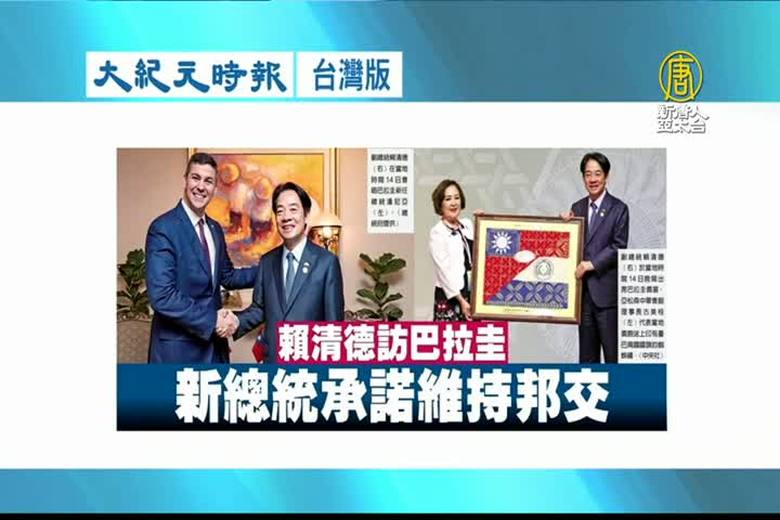新聞首先來看到,副總統賴清德出席巴拉圭總統就職典禮,新任總統潘尼亞首先提及台灣,強調台巴兩國不只是朋友,更是兄弟之情。賴清德也把握機會與多國代表互動,包括美國內政部長、智利、阿根廷總統等人,傳達台灣是一個民主自由、重視人權的國家,希望能為國際社會帶來貢獻。 //asset3.ntdtv.com.tw/public/uploads/assets/2023/08/16/2023-08-16-64dcbb3d244d8.mp4 賴清德訪巴拉圭|巴拉圭總統就職|巴拉圭|中共挖角2023-08-16 20:06:17