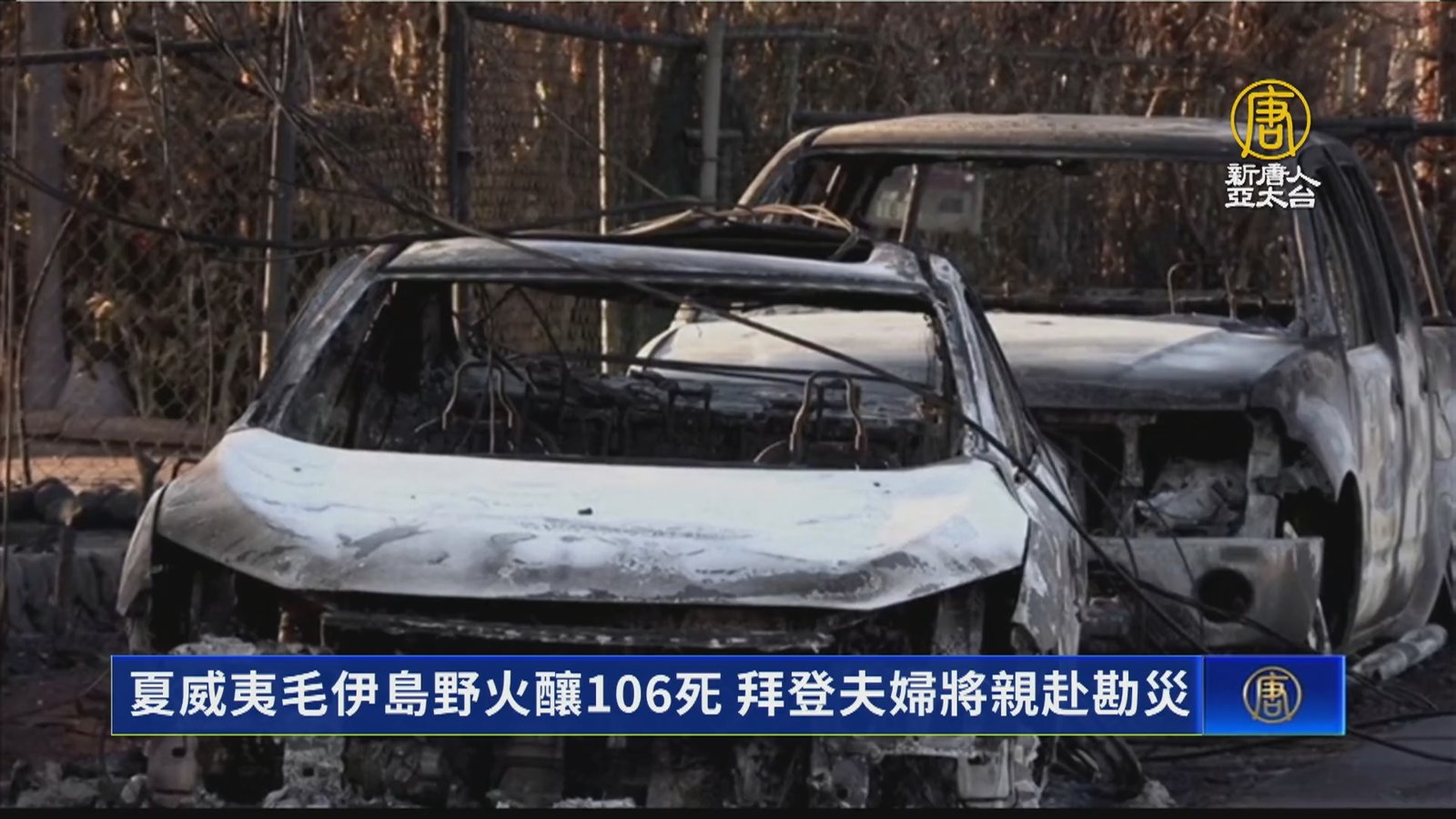 國際新聞來看到,夏威夷毛伊島野火的最新情況。現在,大部分的野火已經獲得控制,不過,死亡人數持續攀升,目前已經來到106人。美國總統拜登表示,將親自前往夏威夷勘災。 //asset2.ntdtv.com.tw/public/uploads/assets/2023/08/16/2023-08-16-64dcb8cd09003.mp4 夏威夷|毛伊島|野火2023-08-16 19:54:05