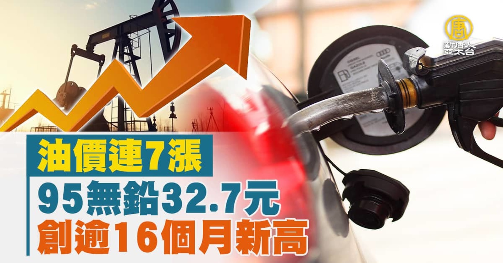 油價連7漲 95無鉛32.7元 創逾16個月新高