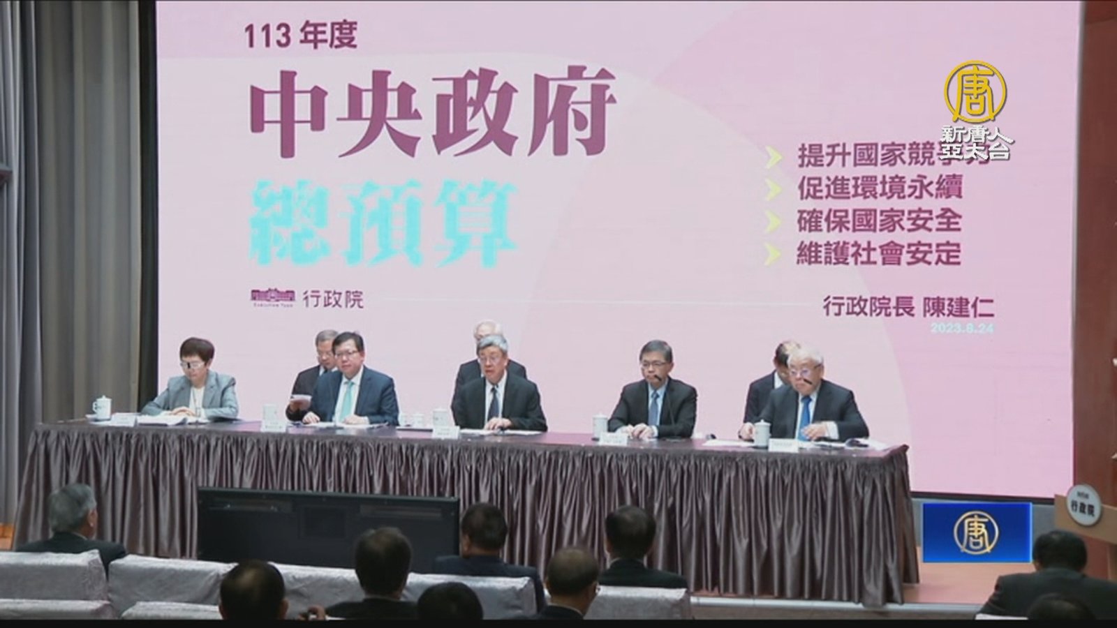 行政院會今天(24日)拍板明年度中央政府總預算案,其中,社福編列最高,較去年增加788億元,另外也將擴大台灣經濟發展,包括科技、六大核心戰略產業以及淨零轉型方面,都有提高支出預算。 //asset3.ntdtv.com.tw/public/uploads/assets/2023/08/24/2023-08-24-64e73d1848db1.mp4 行政院會|社福|國科會|科技|淨零碳排|六大核心戰略產業2023-08-24 19:18:53