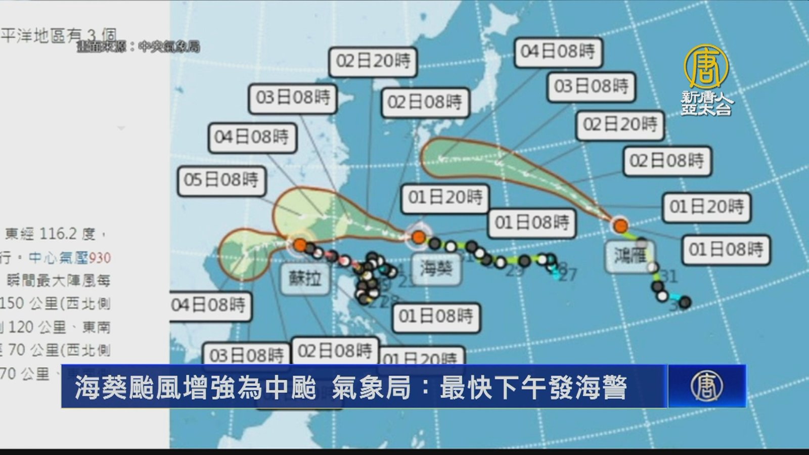 中颱海葵或直撲北台灣 今晚發海警.週日風雨最大