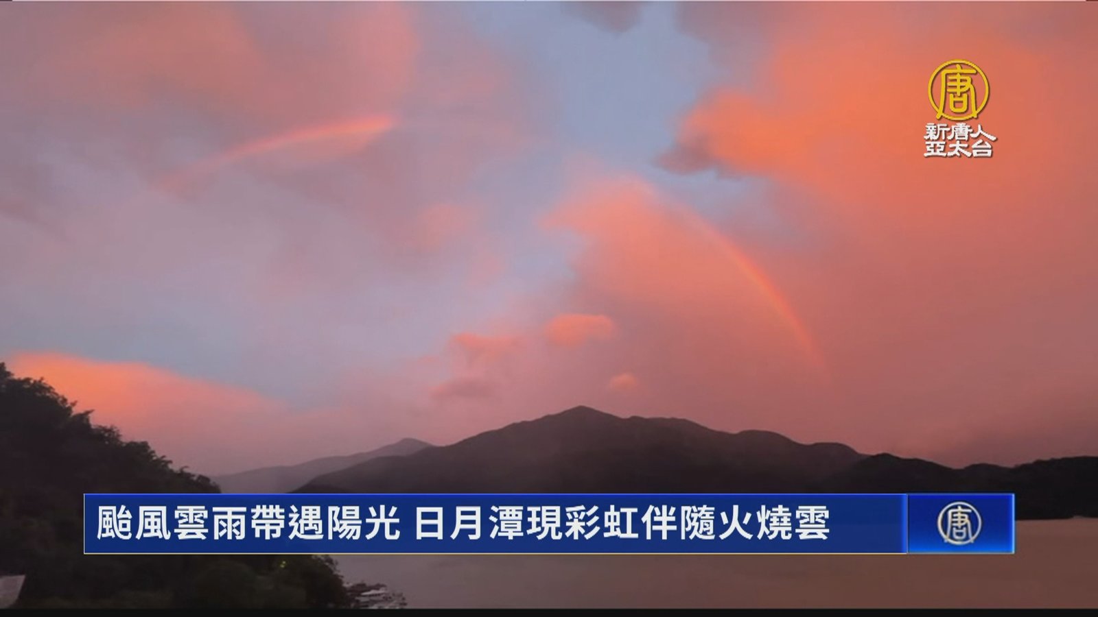 颱風雲雨帶遇陽光 日月潭現彩虹伴隨火燒雲