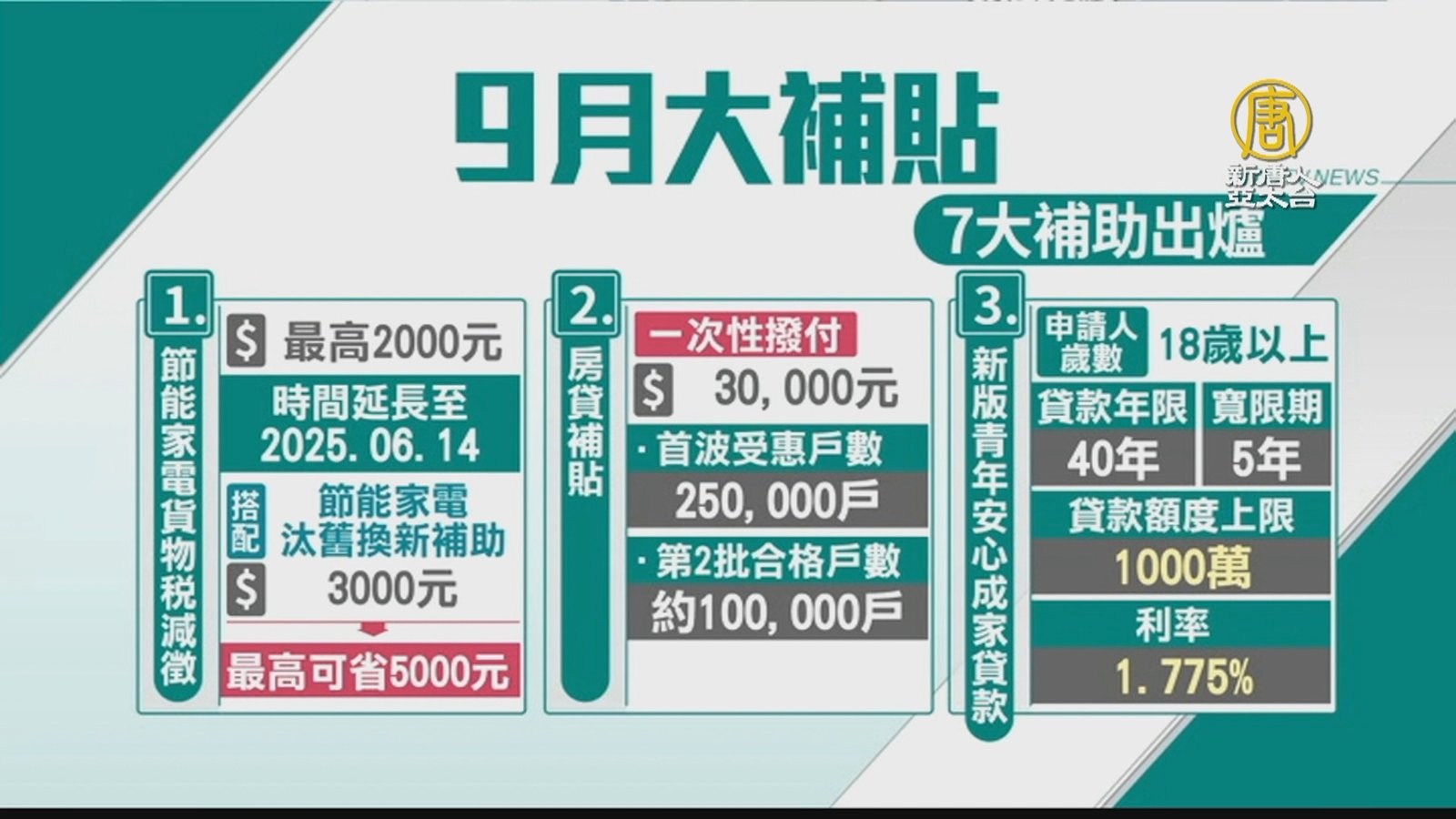 時序進入到九月,我們帶您速覽,9月上路或實施中的各項政府補助方案有哪些。 //asset1.ntdtv.com.tw/public/uploads/assets/2023/09/04/2023-09-04-64f5bf20eea06.mp4 補助|補貼|汰舊換新|節能家電|青年貸款2023-09-04 19:24:21
