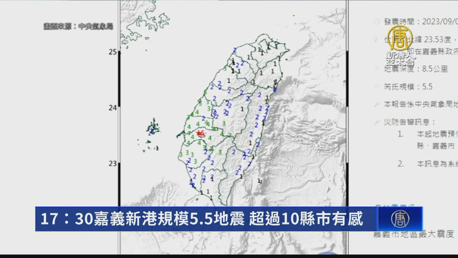 17:30嘉義新港規模5.5地震 超過10縣市有感