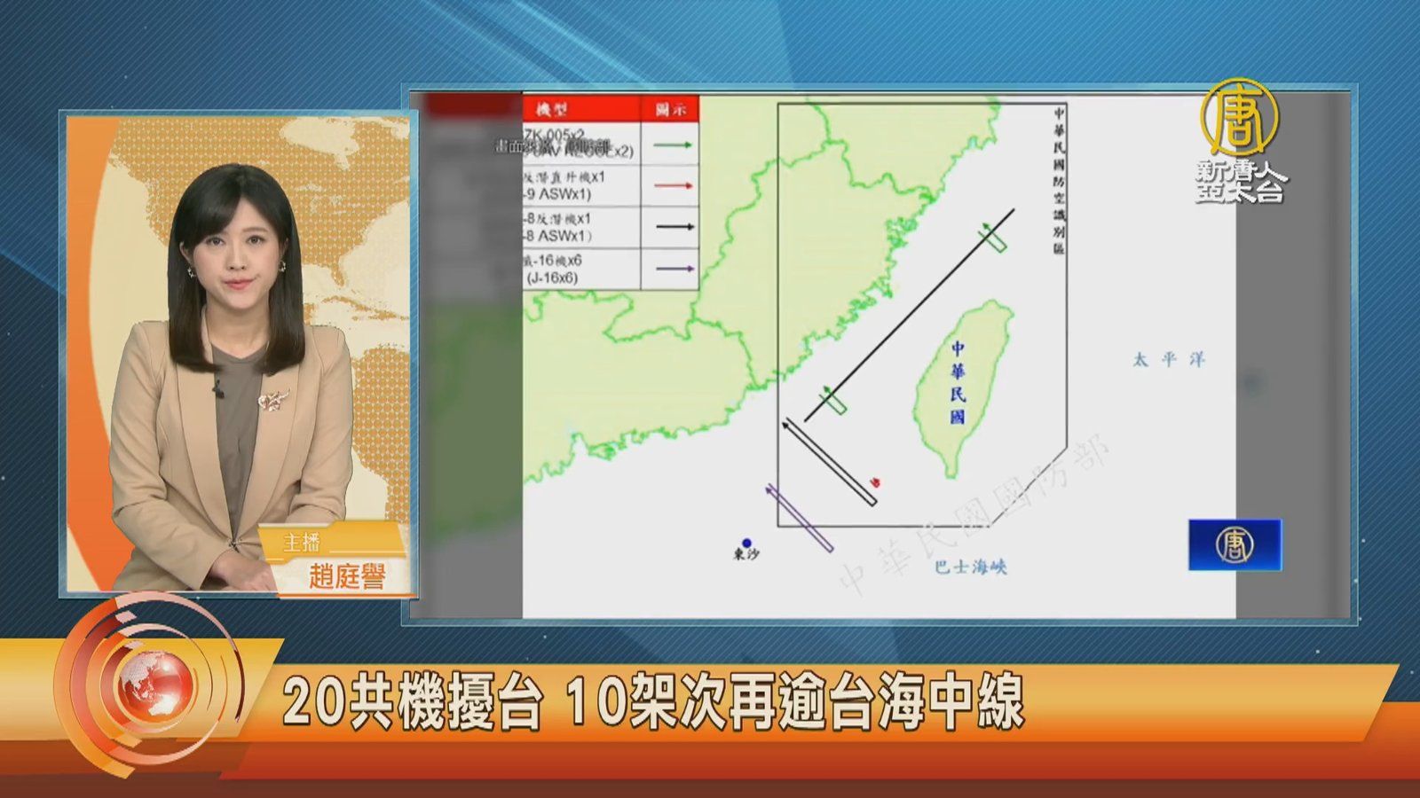 歡迎回到新聞現場。聯合國大會期間,G7七國聲明,是今年第三度重申台海和平穩定的重要性;東協十國也正在南海舉行首次聯合軍演。不過,中共軍機持續侵擾台灣空域,中華民國國防部晚間消息,今天21日偵獲中共軍機逾20架次出海活動,包括殲-10、殲-16、蘇愷-30等,部分機型逾越海峽中線及其延伸線,進入台灣西南及東南空域,配合中共艦船執行所謂戰備警巡。台灣軍方監控,公布空軍偵照的中共運8反潛機照片,並同步監控共軍遠火、火箭軍,和福建大埕灣附近地面部隊的動態。 //asset3.ntdtv.com.tw/public/uploads/assets/2023/09/21/2023-09-21-650c2991e5216.mp4 台海局勢|共機2023-09-21 19:33:14
