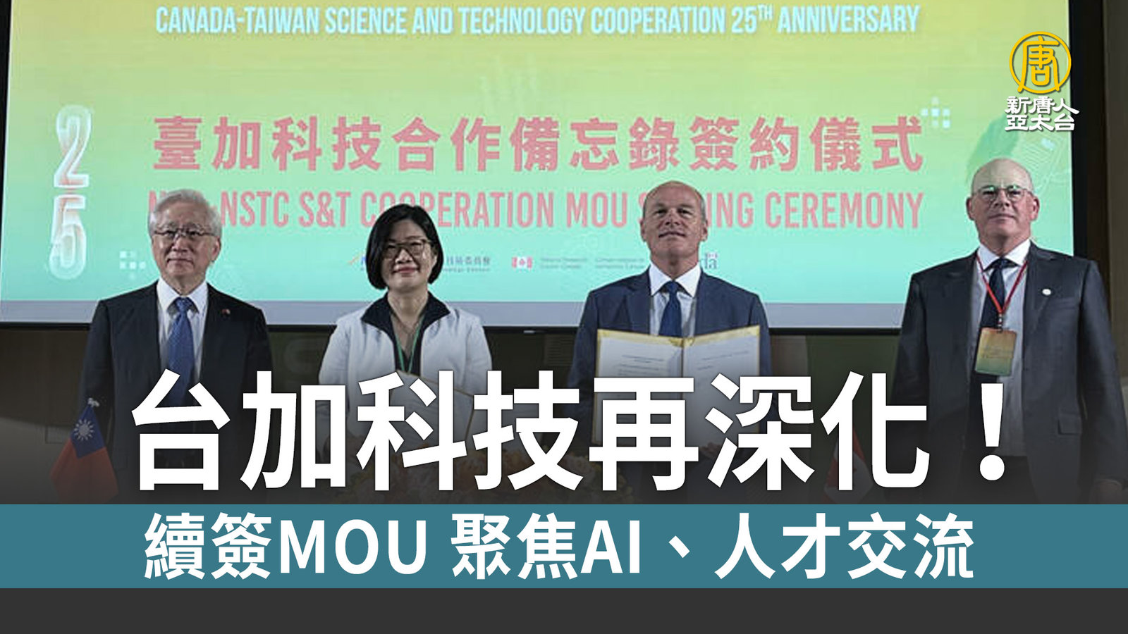 而台灣與加拿大的科技合作持續深化。台灣國科會與加拿大國家研究院合作滿25週年,今天雙方再續簽合作備忘錄,並與加拿大先進研究所與培育人才平台簽署新MOU,深化AI、量子計算等領域合作。 //asset3.ntdtv.com.tw/public/uploads/assets/2023/09/25/2023-09-25-65116cdd29292.mp4 台加科技合作|加拿大國家研究院|國科會|吳政忠2023-09-25 19:16:15