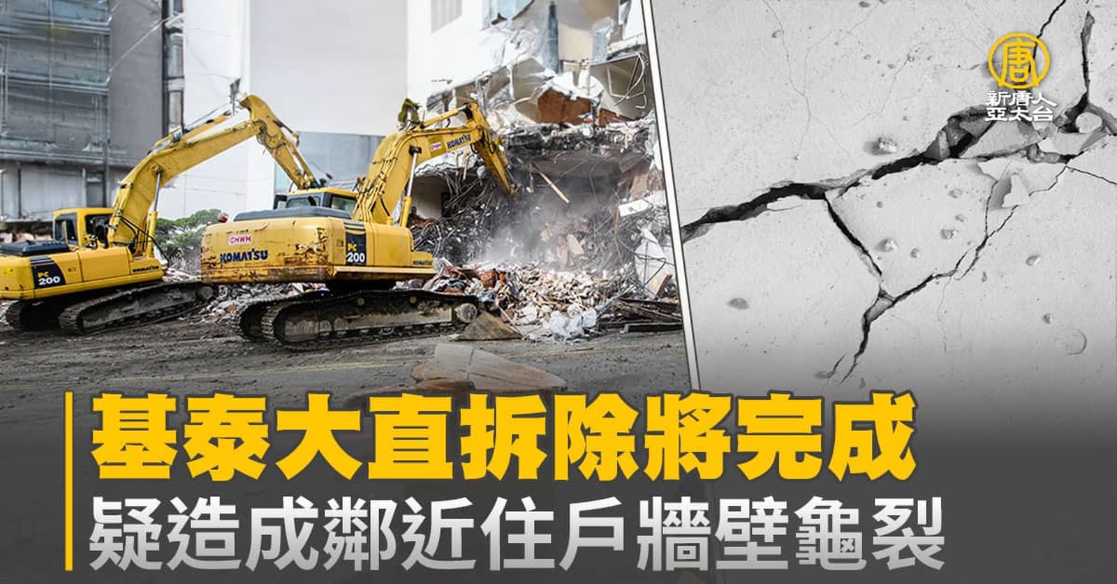 基泰大直拆除將完成 疑造成鄰近住戶牆壁龜裂