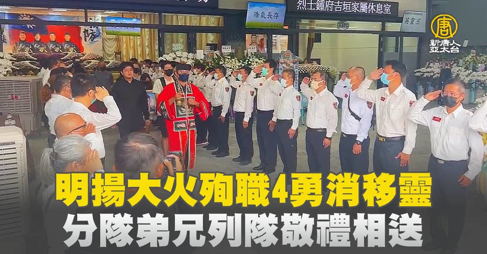 明揚大火殉職4勇消移靈 分隊弟兄列隊敬禮相送