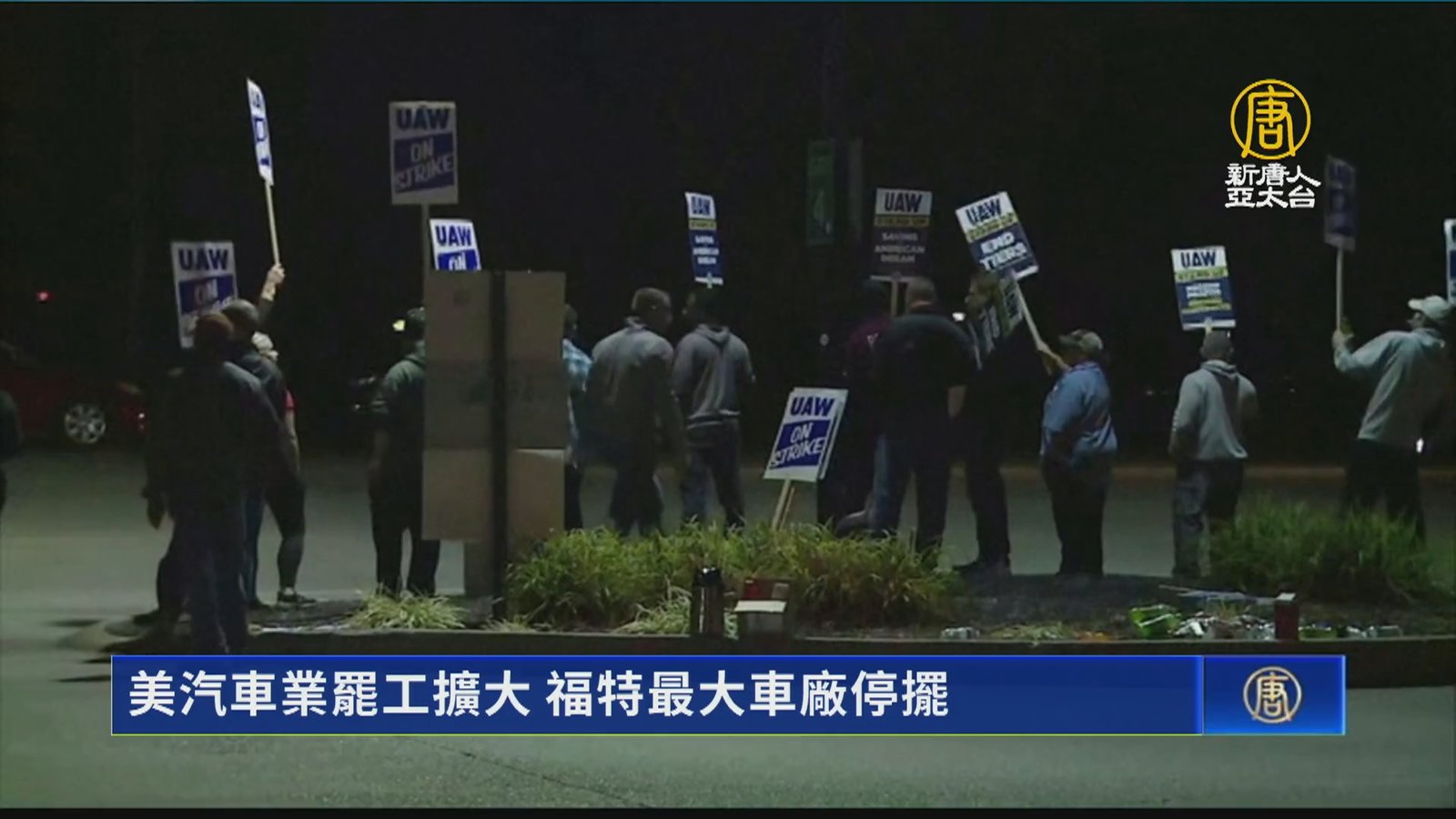 美國汽車工人聯合會(UAW)與底特律汽車三巨頭之間的勞資談判,進入第四周,罷工行動又進一步升級。在當地時間 11 日下午,福特公司肯塔基州卡車工廠的 8,700 名汽車工人開始罷工。據了解,福特的這家工廠年營收約250億美元,是公司規模與利潤最大的工廠。 //asset1.ntdtv.com.tw/public/uploads/assets/2023/10/12/2023-10-12-6527dd365a977.mp4 罷工|UAW2023-10-12 19:45:38