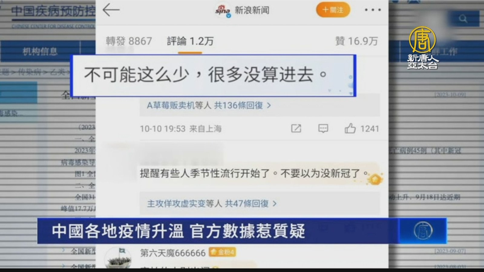 中國疫情再度升溫,醫院發熱門診病患爆增。中共疾控中心最新通報稱,9月新增新冠(中共病毒)死亡病例45例,重症病例398例。但民眾質疑實際疫情更加嚴重。 //asset3.ntdtv.com.tw/public/uploads/assets/2023/10/12/2023-10-12-6527da3631ca5.mp4 中國疫情|發熱門診|中共病毒|武漢肺炎2023-10-12 19:40:55