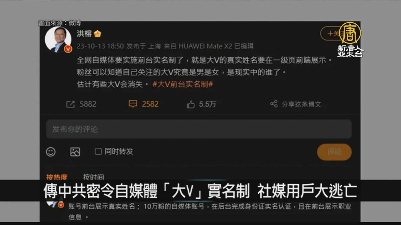 傳中共密令自媒體「大V」實名制 社媒用戶大逃亡|中國一分鐘