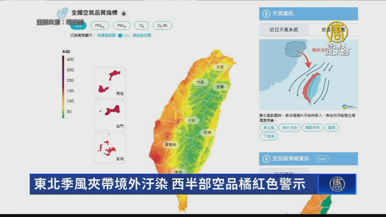 新聞一開始,先來關心,受到東北季風影響,境外汙染物移入台灣,截至今天下午6點,新北市富貴角、金門及馬祖,空氣品質已達紅色警示等級,北部及南部多個測站達橘色警示等級。面對入秋後首波境外汙染物,台南市政府成立應變小組加強稽查,更啟動雲嘉南高屏6縣市聯合應變,通報大型工廠執行降載減排、要求大型工地增加灑水頻率等應變作為,預估19日中午過後污染才減緩,呼籲民眾減少戶外活動。 //asset2.ntdtv.com.tw/public/uploads/assets/2023/10/17/2023-10-17-652e6adaa2400.mp4 空氣品質|空汙|東北季風|環境部2023-10-17 19:02:11