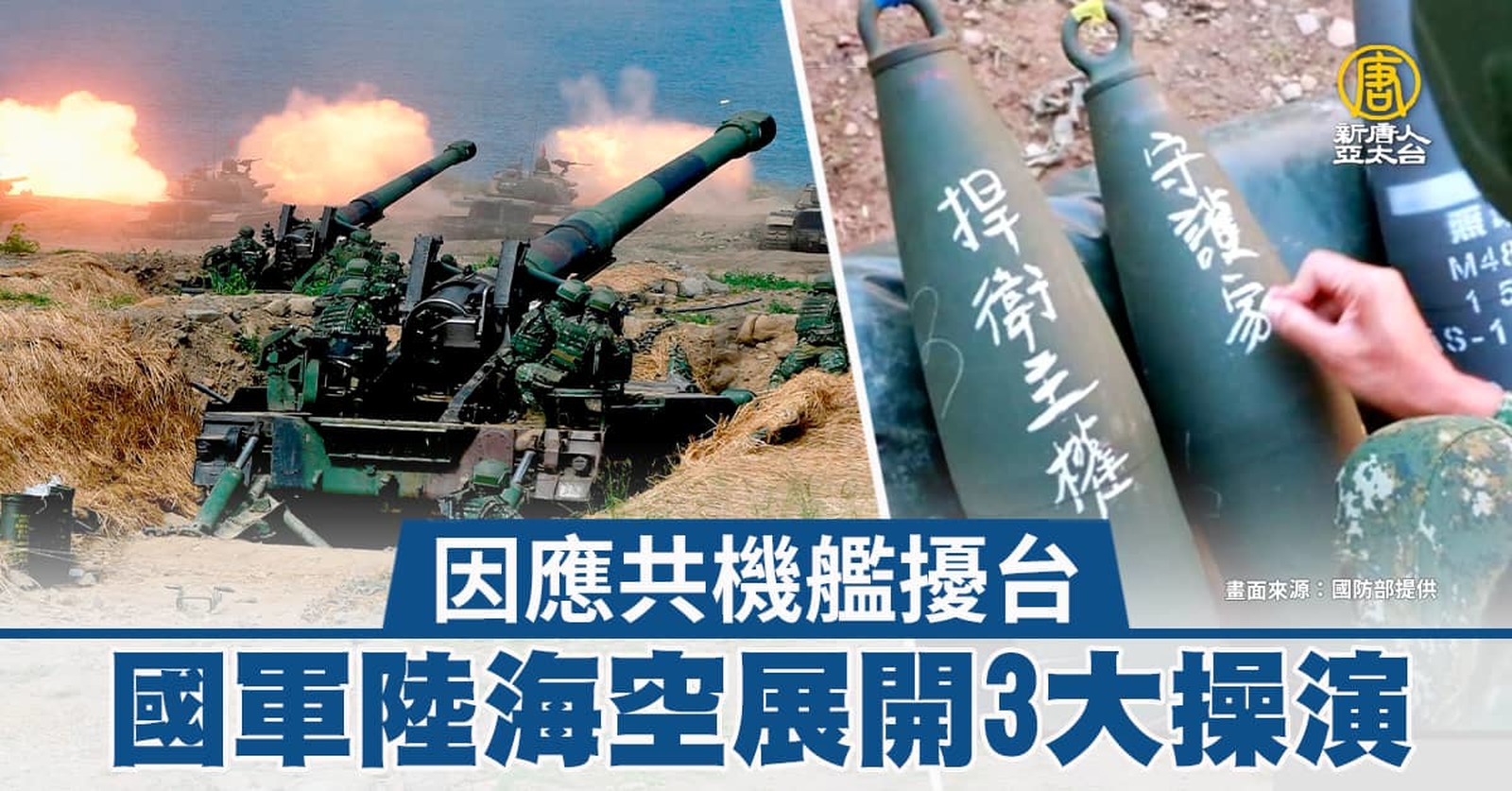 持續關注台海動態,國防部公布,截至今天上午6點,24小時內偵獲共機11架次、共艦4艘次,持續在台海周邊活動。中華民國國軍為了強化戰力,將進行陸海空軍3大操演,包括已經停辦6年的陸軍「長青操演」將在23日展開、空軍「天龍操演」將在30日實施,而海軍年度重大演習「海強操演」已在16日展開進行到20日。 //asset3.ntdtv.com.tw/public/uploads/assets/2023/10/17/2023-10-17-652e6c021d807.mp4 共機|共艦|軍演|長青操演|天龍操演|海強操演|台海局勢2023-10-17 19:09:39
